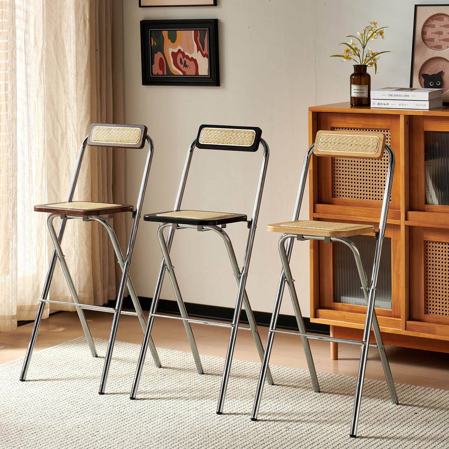 📚 需定制2025新款中古风折叠吧台椅设计师高脚凳子55cm坐高椅子覆古