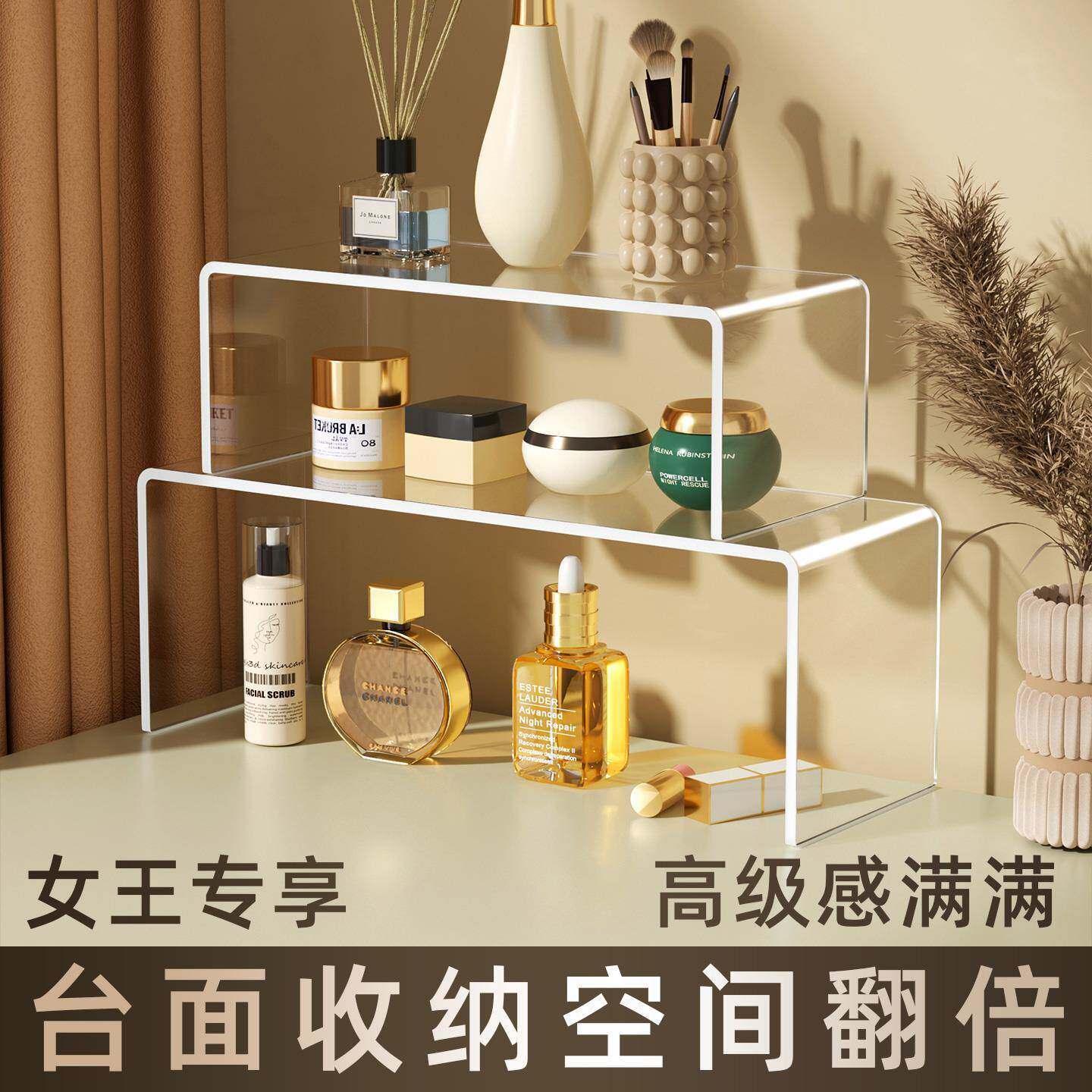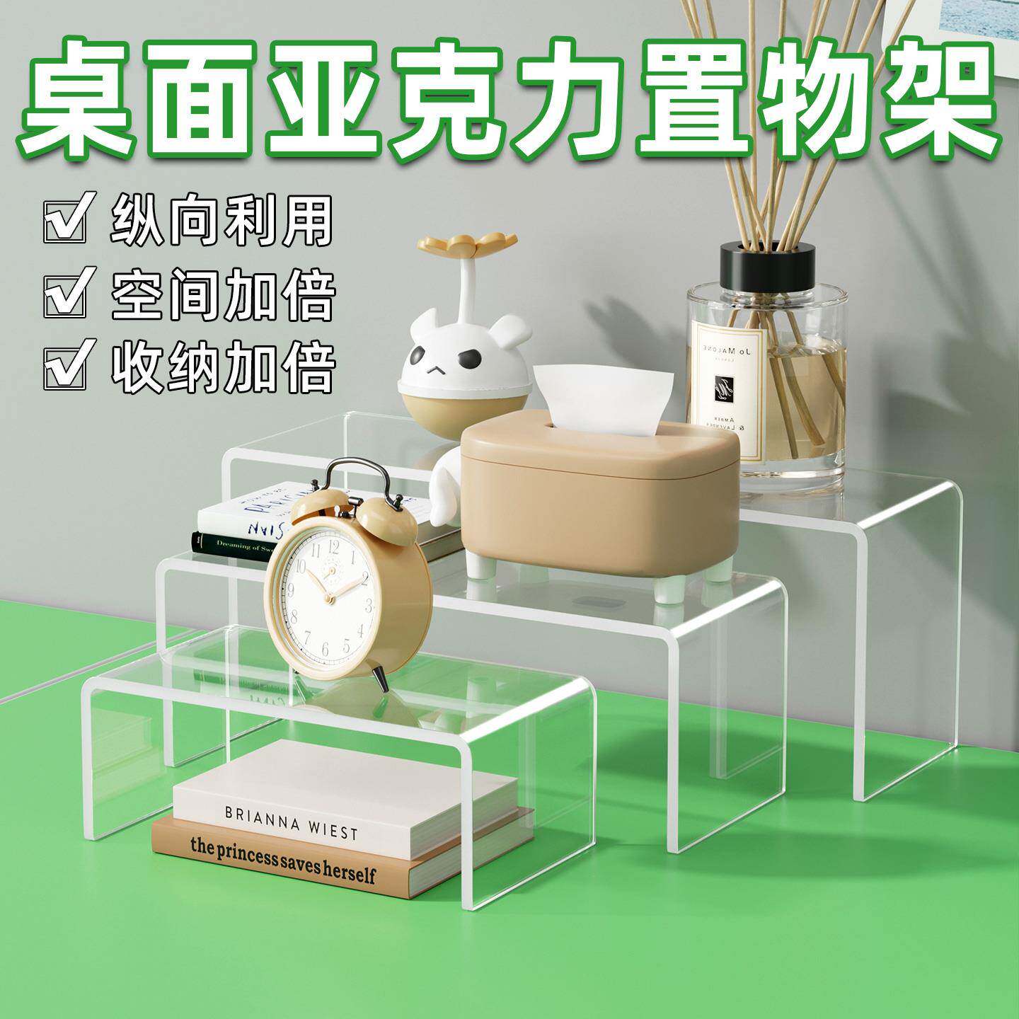 📚 压克力桌面置物架隔板分层收纳层架U型增高架透明阶梯多层展示架