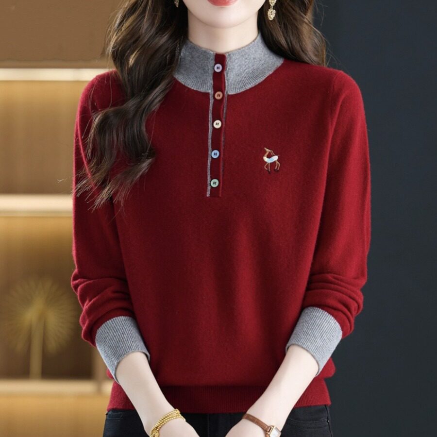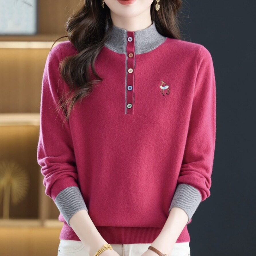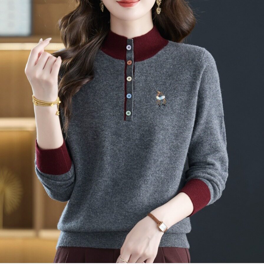📚 羊毛衫女秋冬新款半高领针织打底衫宽松显瘦拼色套头毛衣厚
