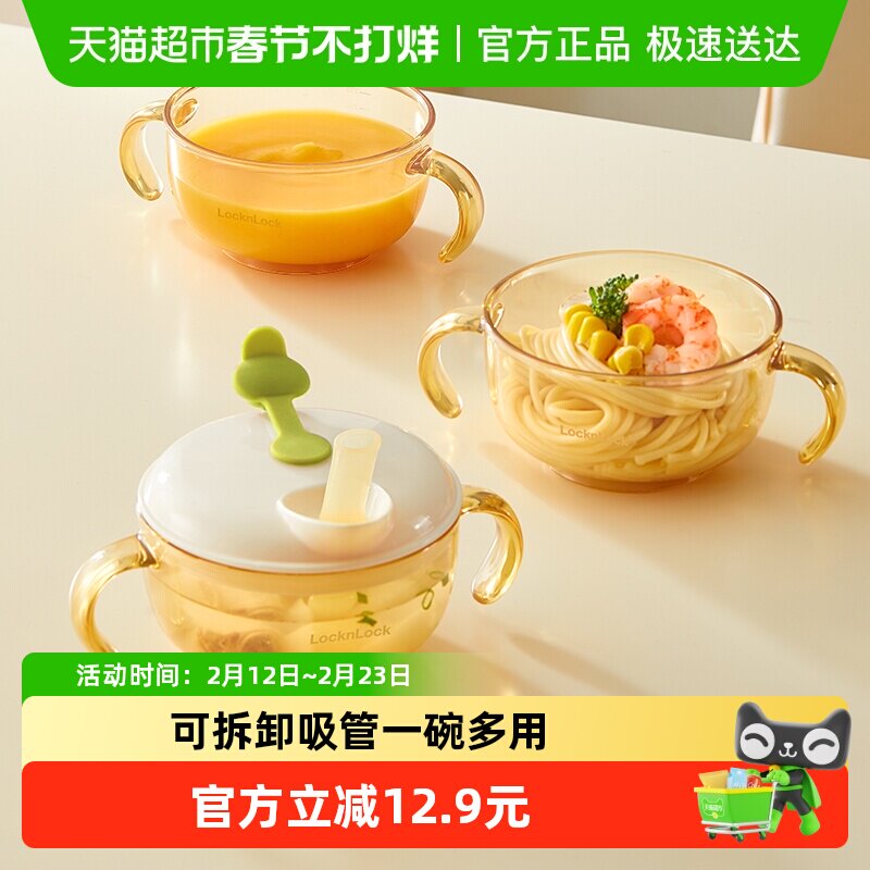📚 乐扣乐扣婴儿辅食碗吸盘式PPSU米糊喝粥喝汤吸管碗宝宝吃饭专用碗