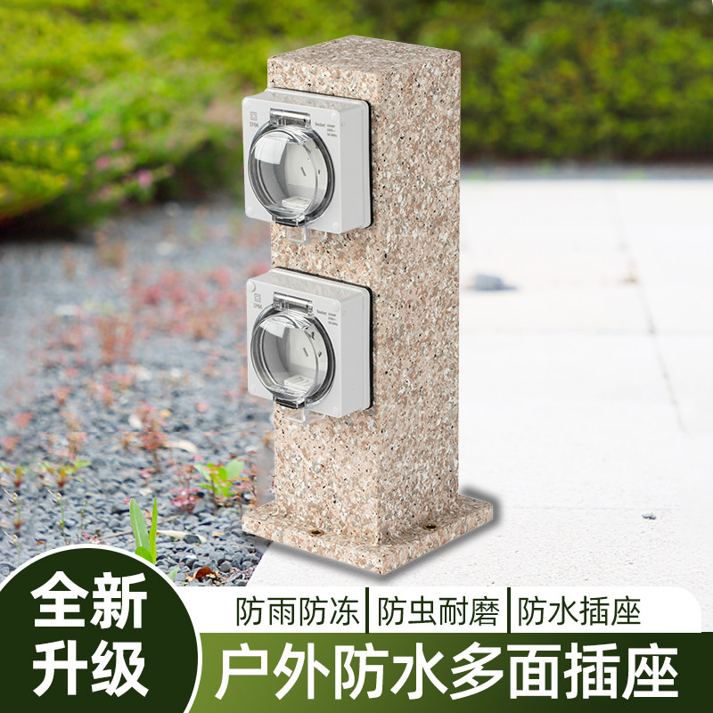 📚 户外IP44防水防雨立式插座16A地插接地接线不锈钢带灯圆柱长方形