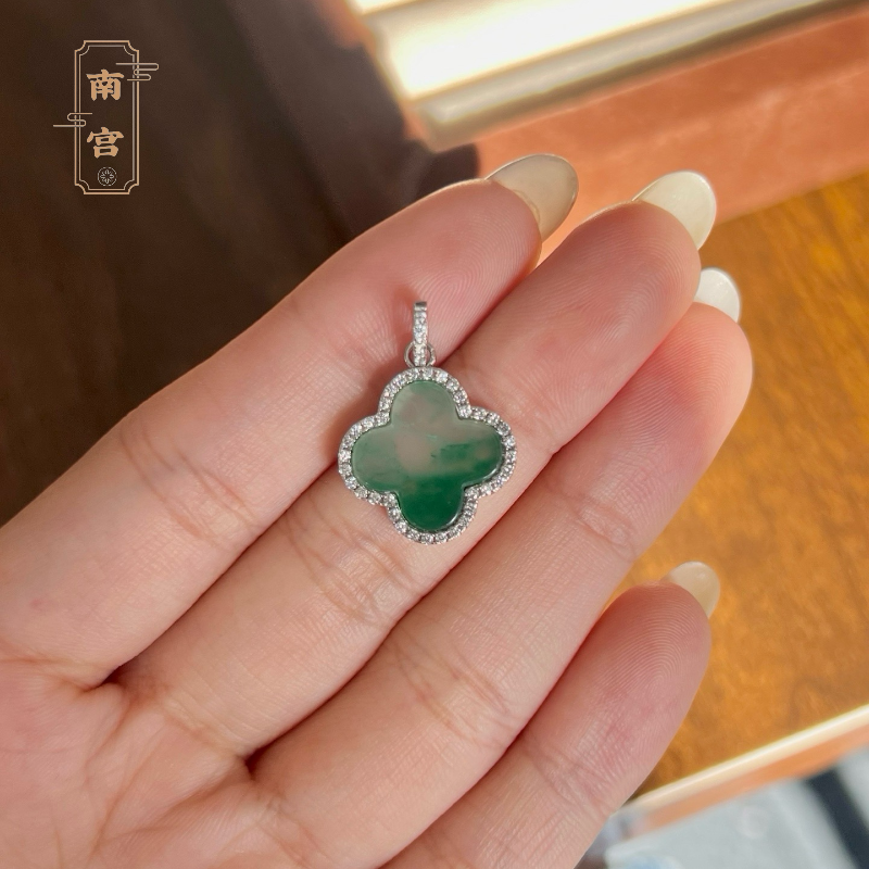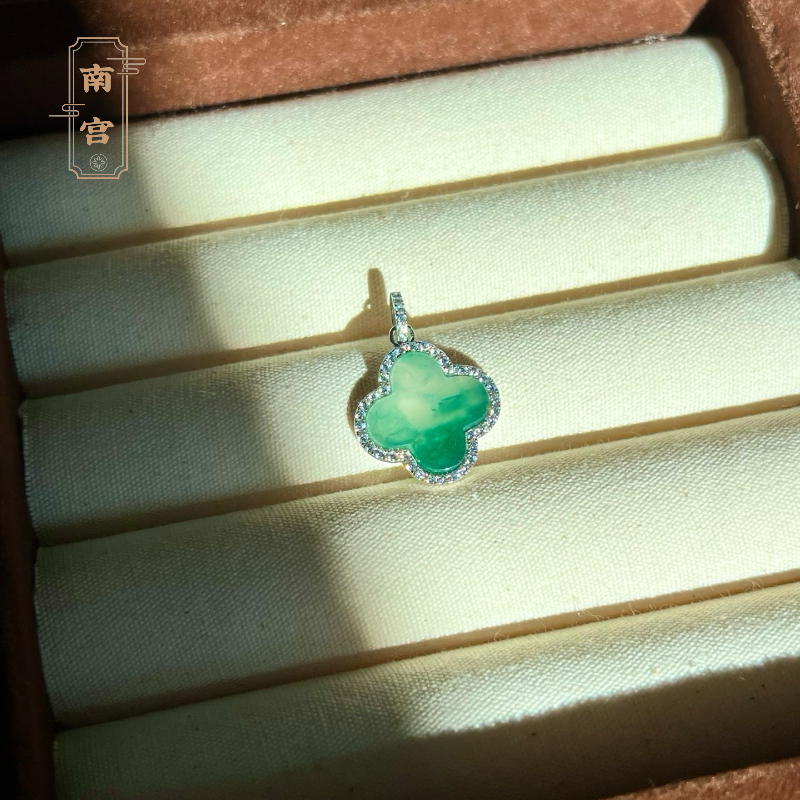 📚 「南宫」S925银天然非洲翠四叶草吊坠冰飘花高级感礼物生日节日