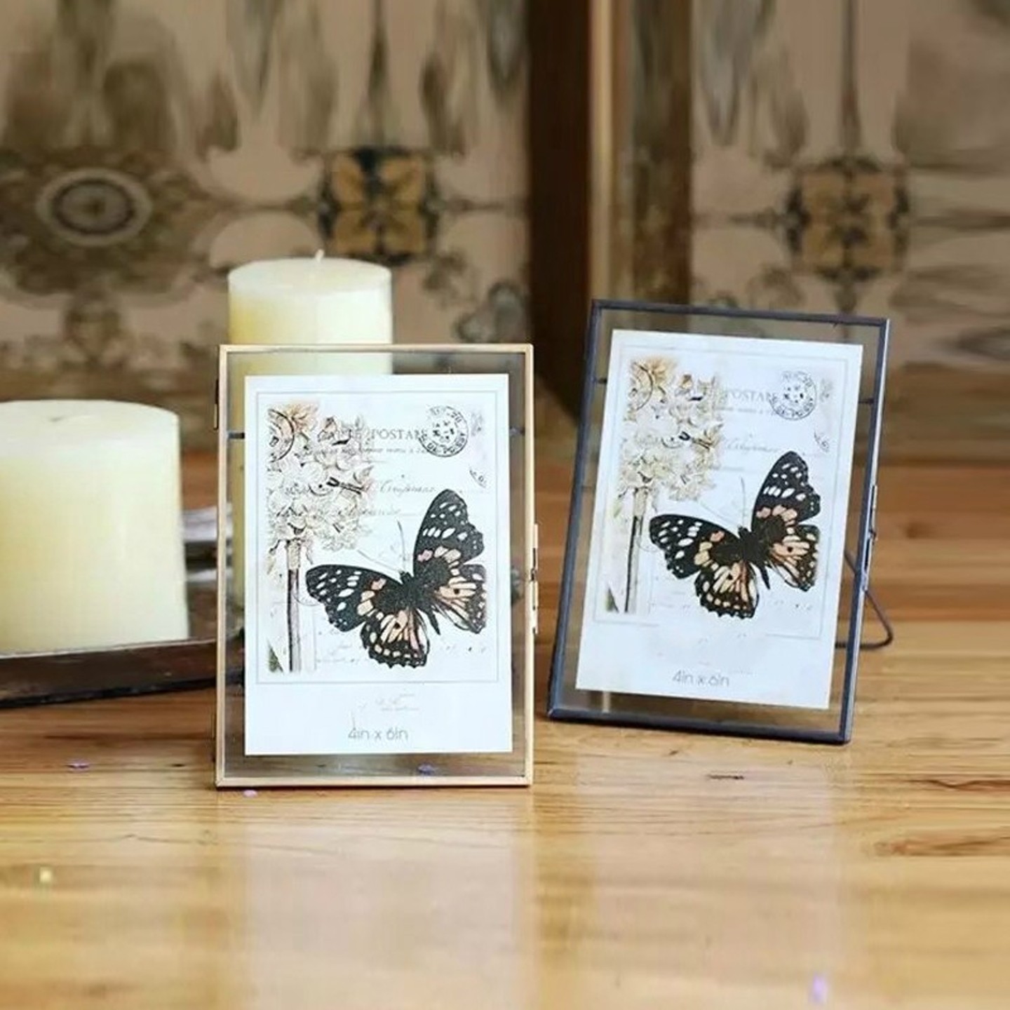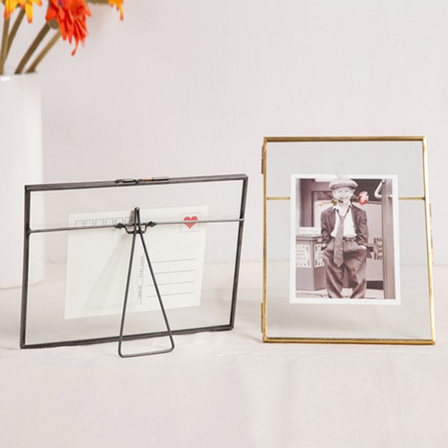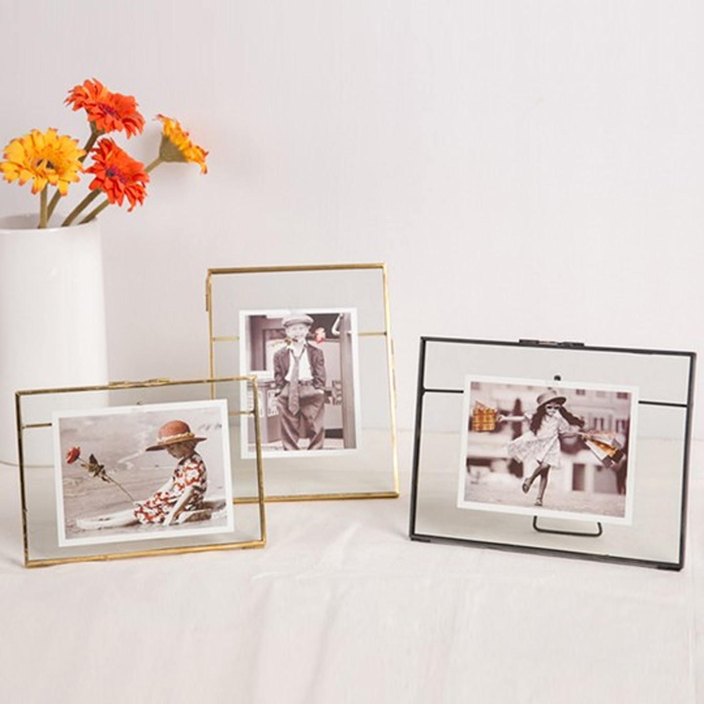 📚 北欧金色玻璃复古相框标本框几何立体照片架婚礼摆台装饰7寸黑色
