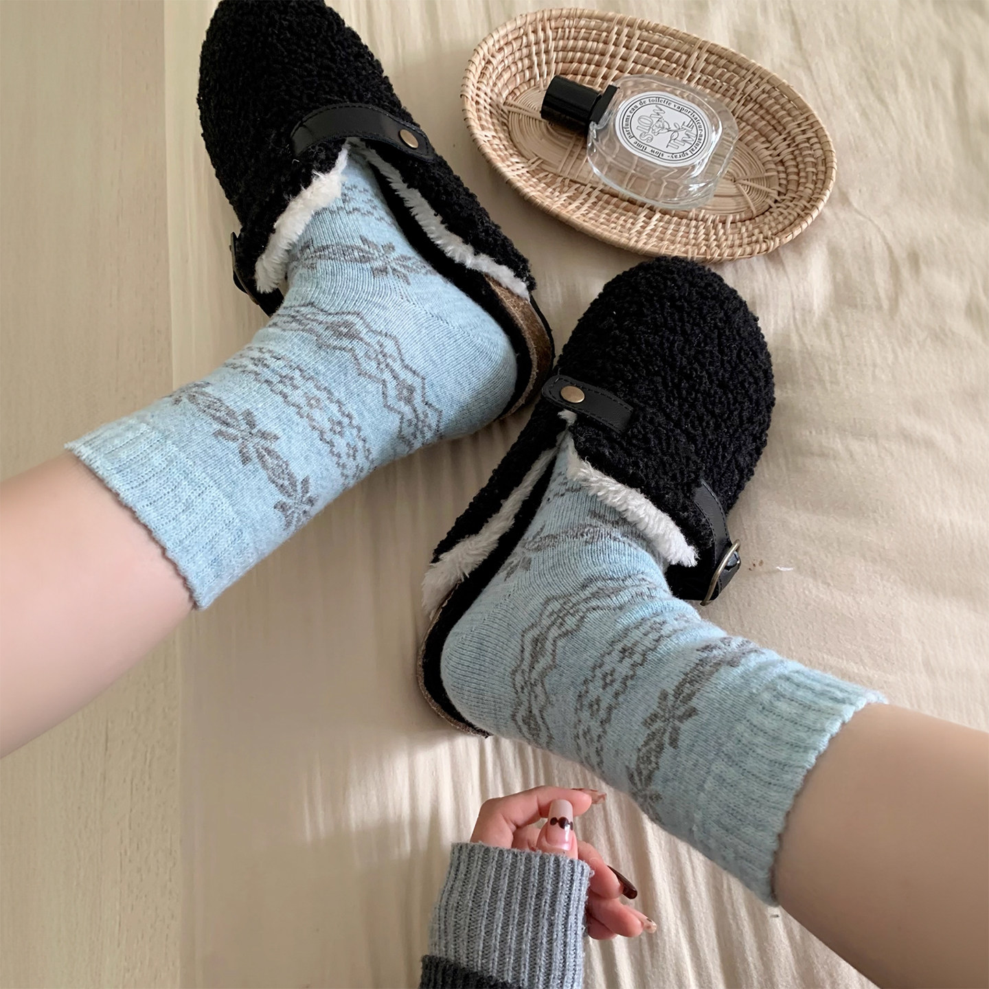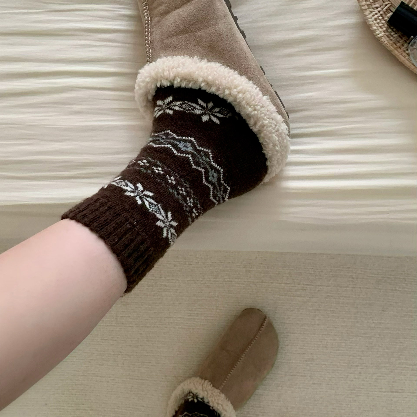 📚 韩剧氛围感~暖冬费尔岛复古雪花ins羊毛袜软糯加绒加厚保暖中筒袜