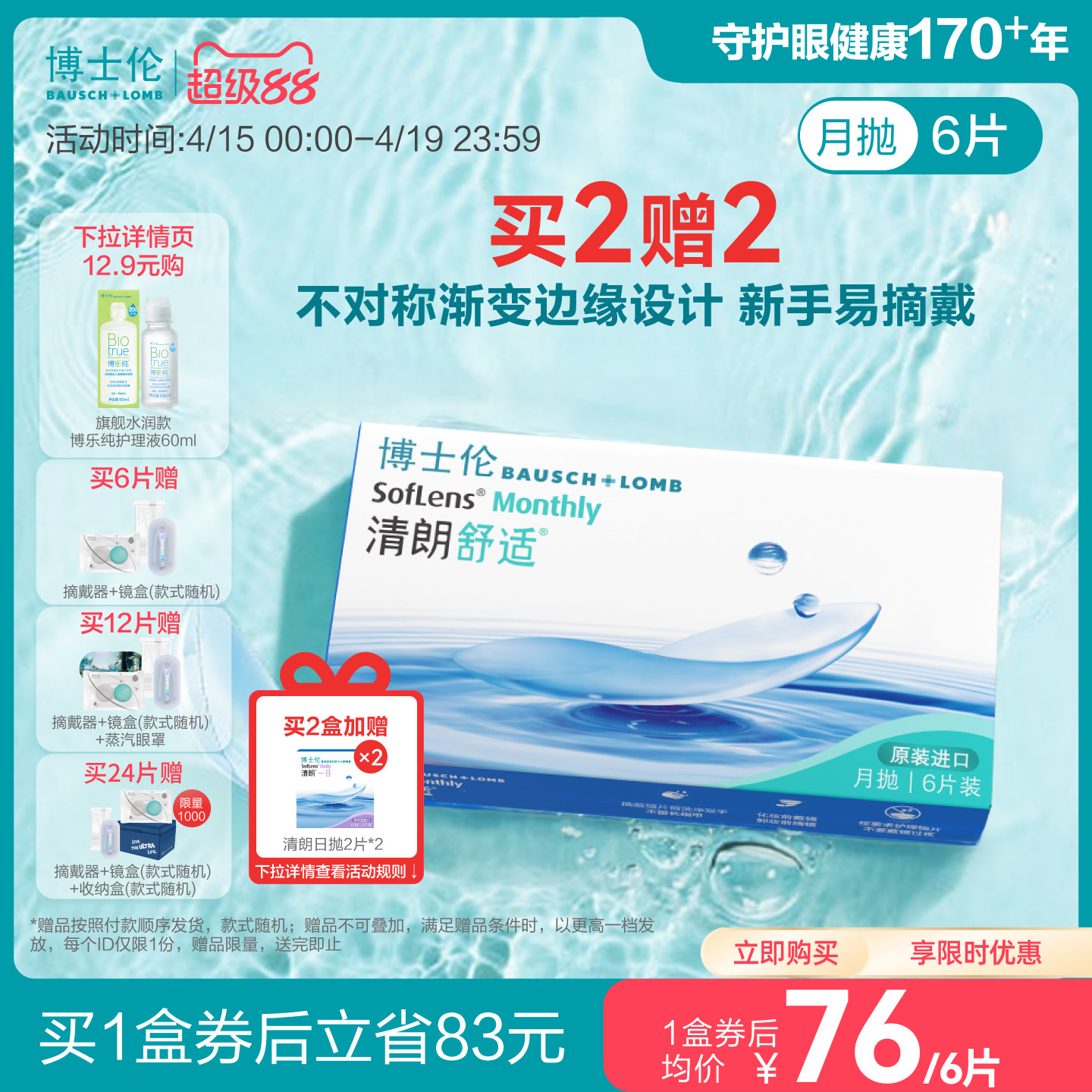 📚 博士伦清朗舒适月抛隐形眼镜水润保湿轻薄透氧高度近视进口正品