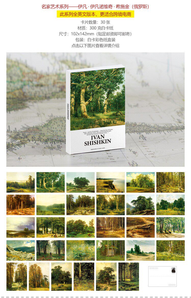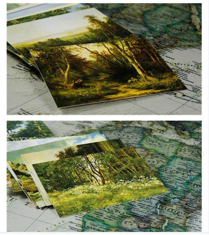 📚 施希金油画艺术作品明信片欧美复古风景绘画卡片节日祝福留言贺卡