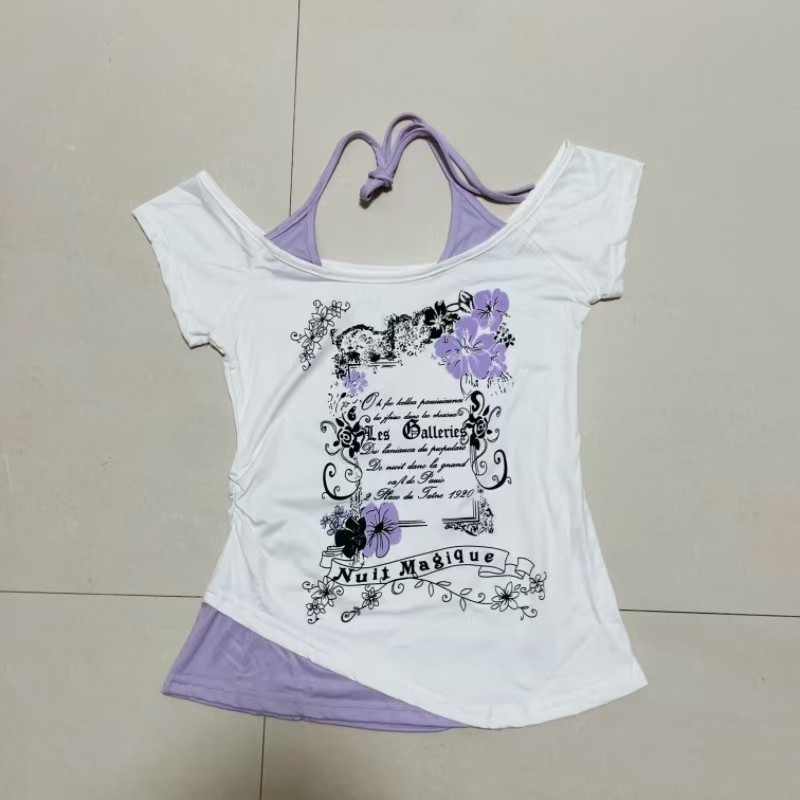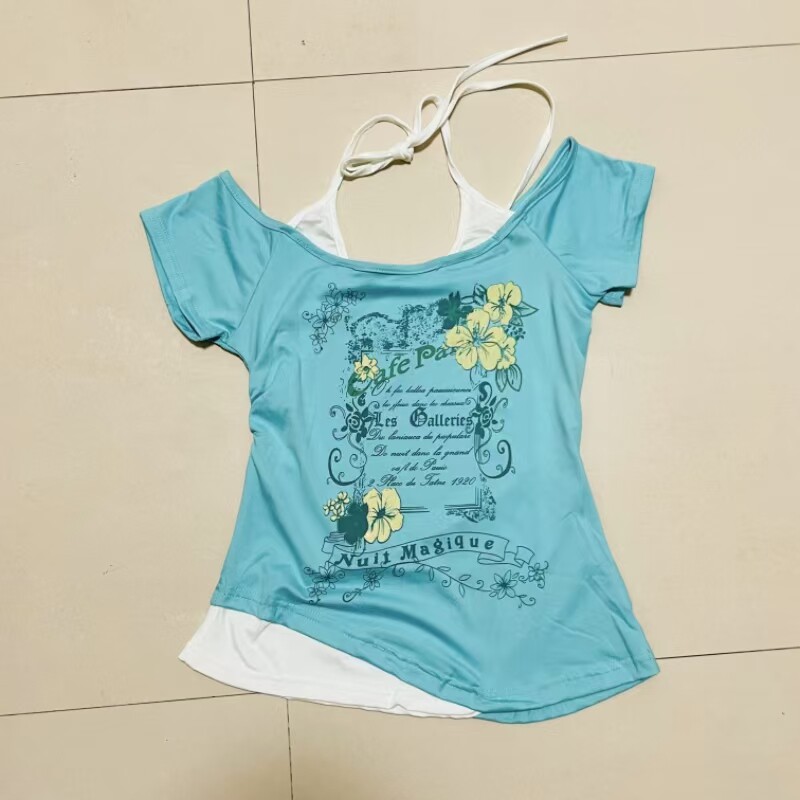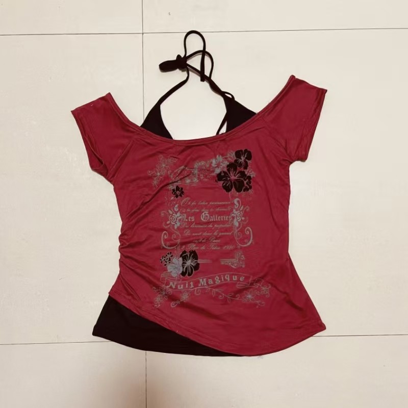 📚 亚文化朋克中古着vintage复古假两件美式甜辣短袖T恤女修身上衣