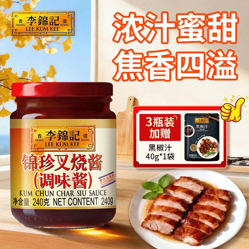 📚 李锦记锦珍蜜汁叉烧酱调味炒菜鸡翅牛排烧烤肉广式
