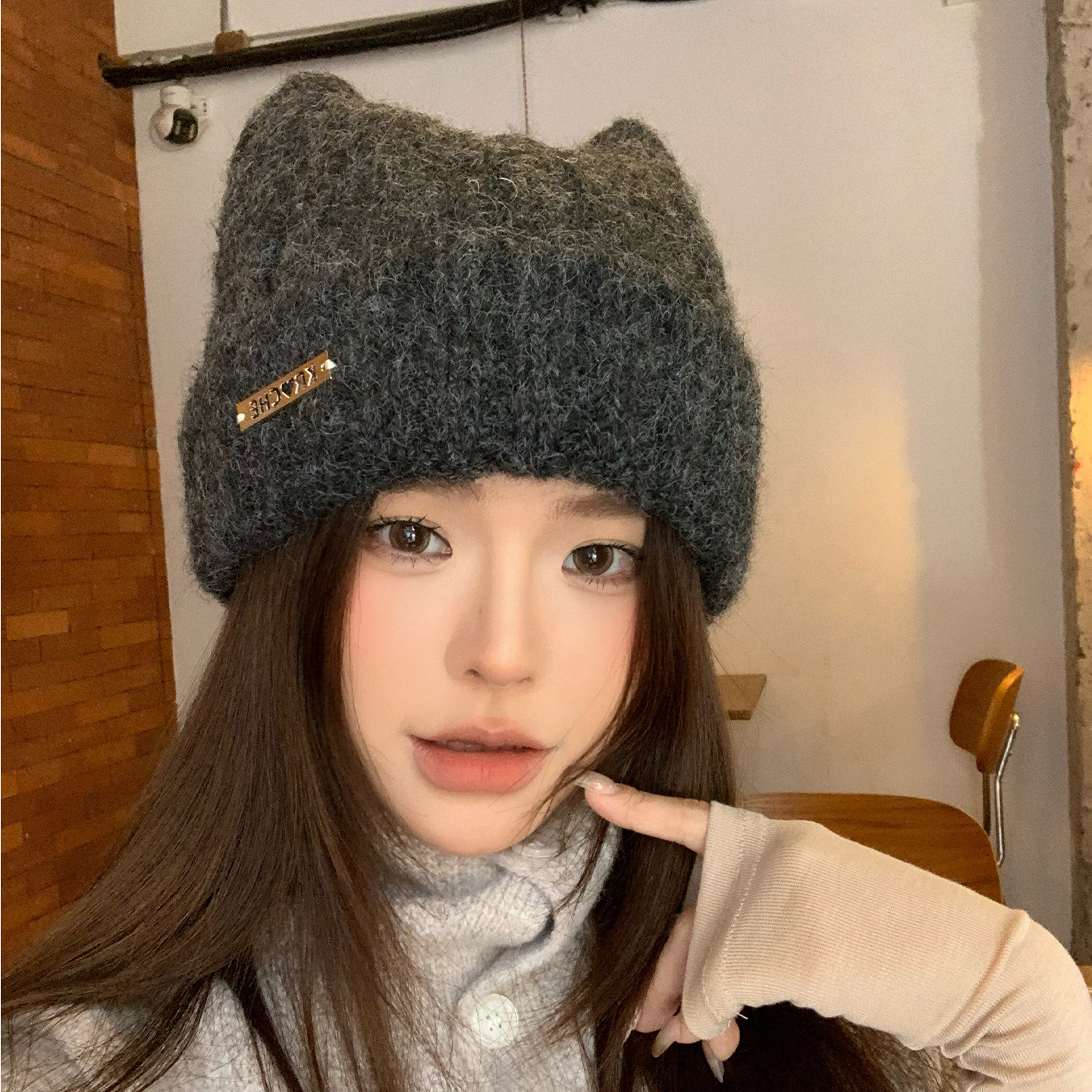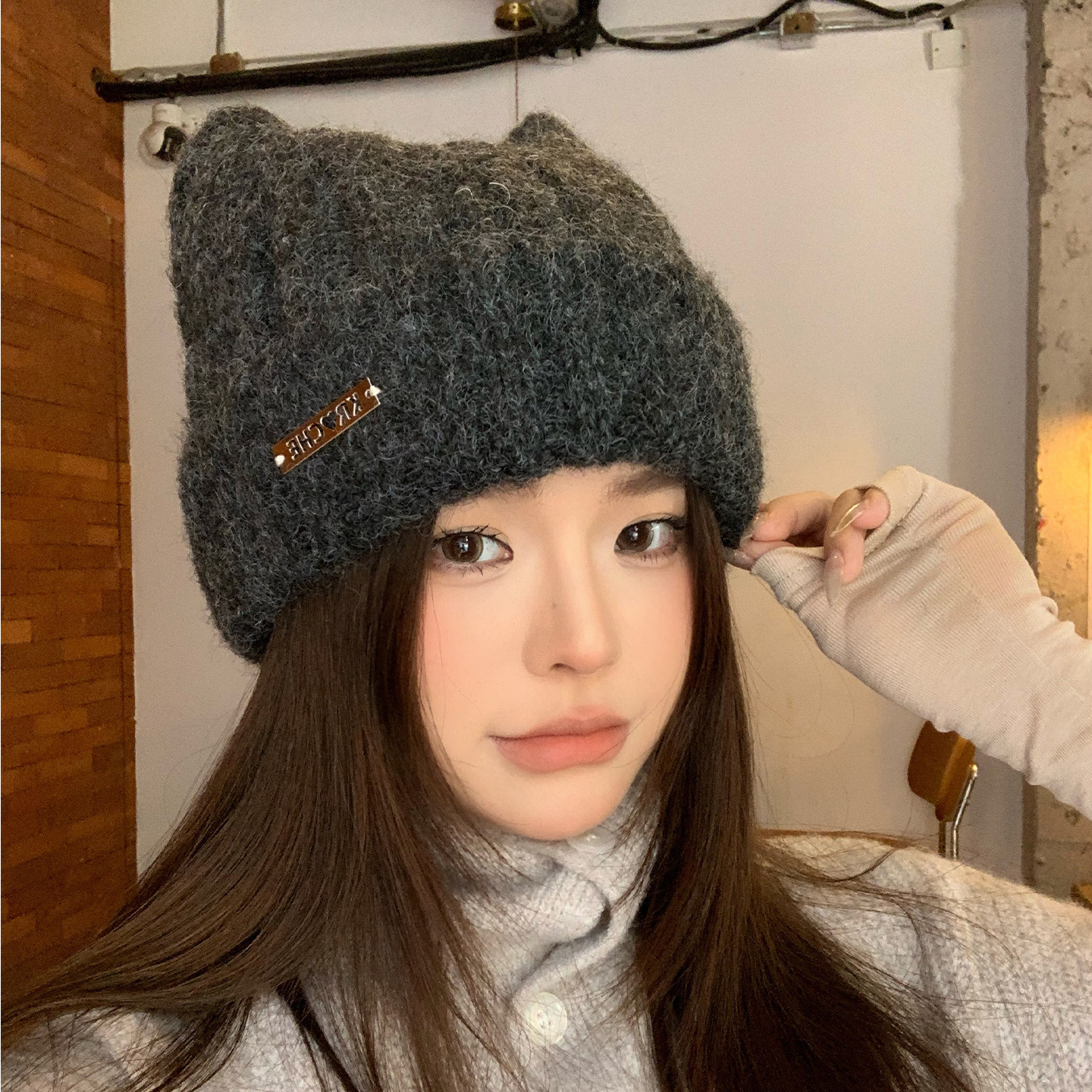 💓“萌翻秋天的猫耳朵毛线帽,女款大头围超暖冬神器!”💖