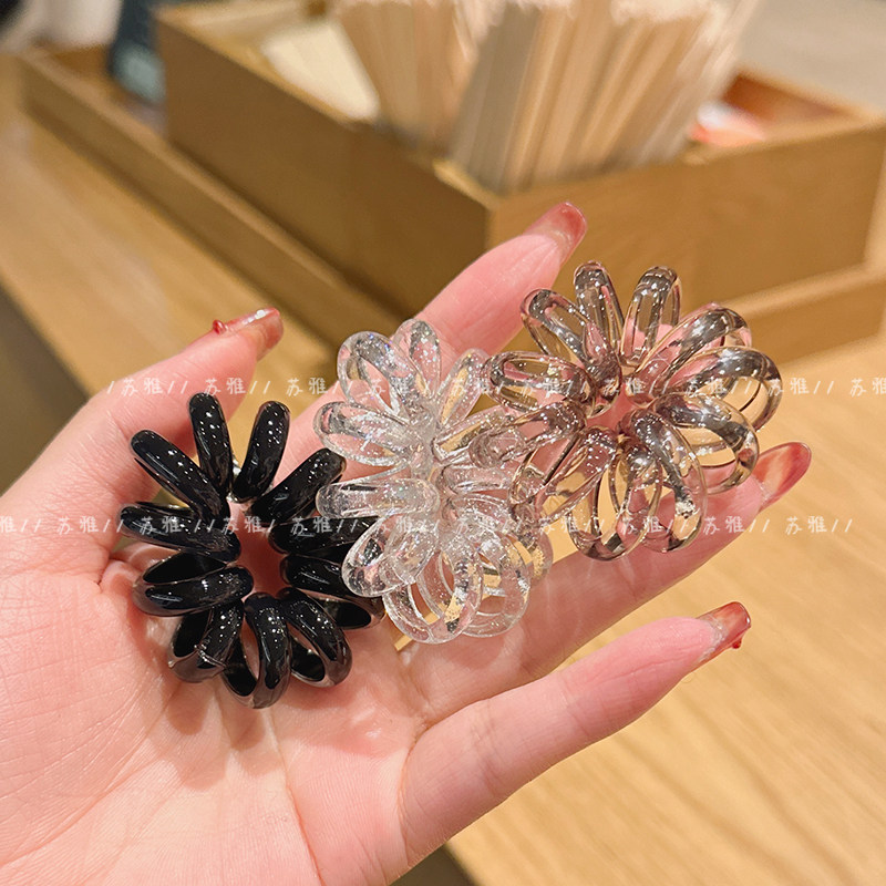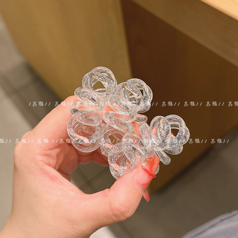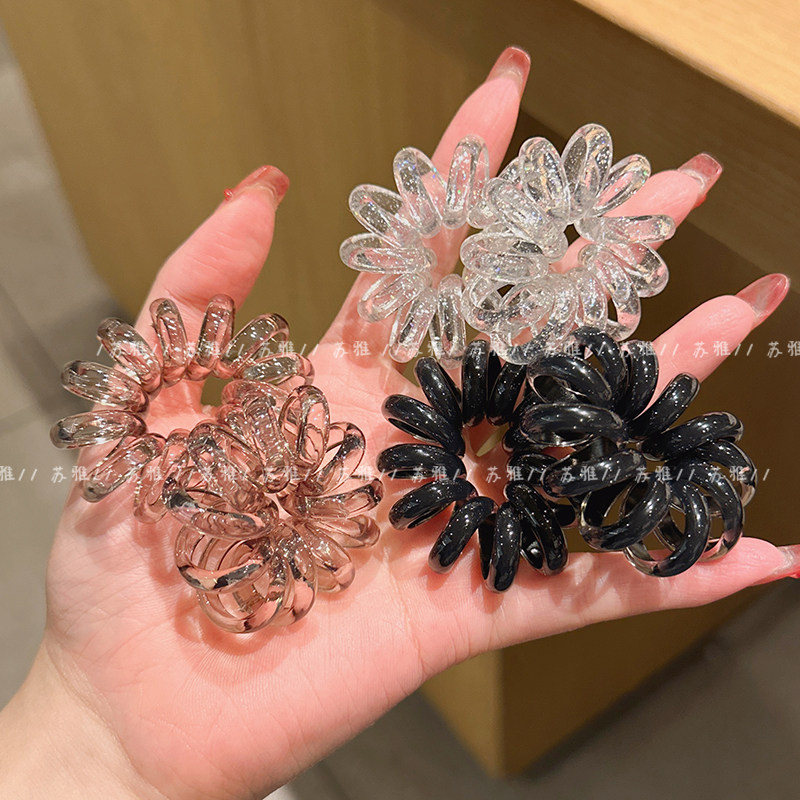 📚 出口外贸电话线发圈加粗透明咖色简约无痕头绳女扎头皮筋马尾发绳