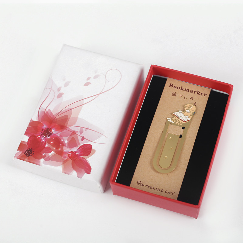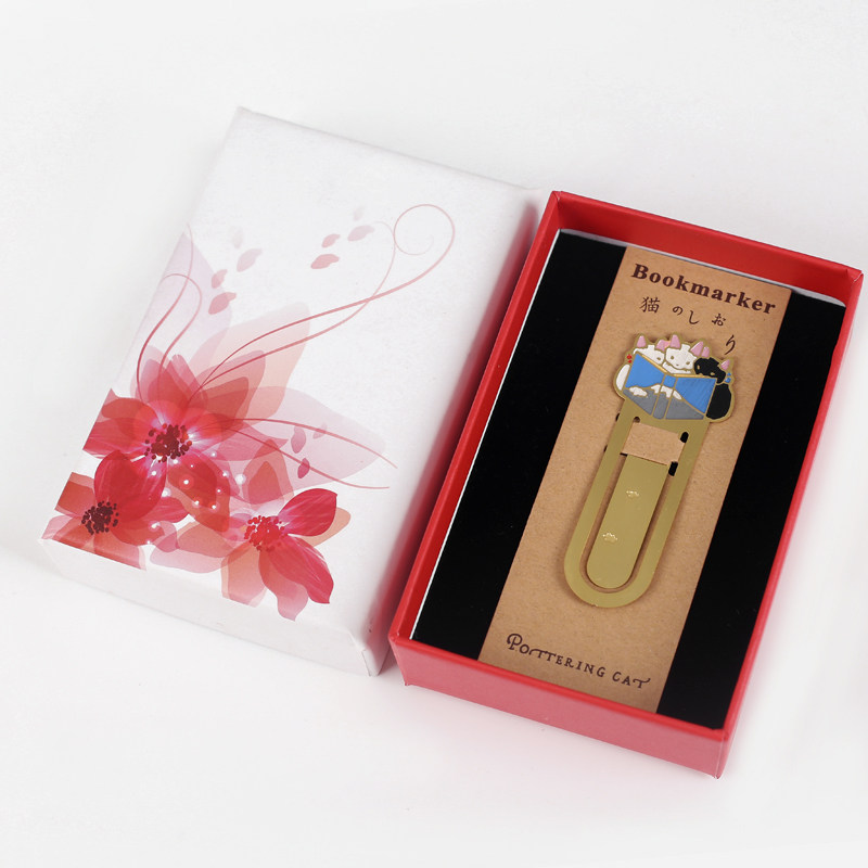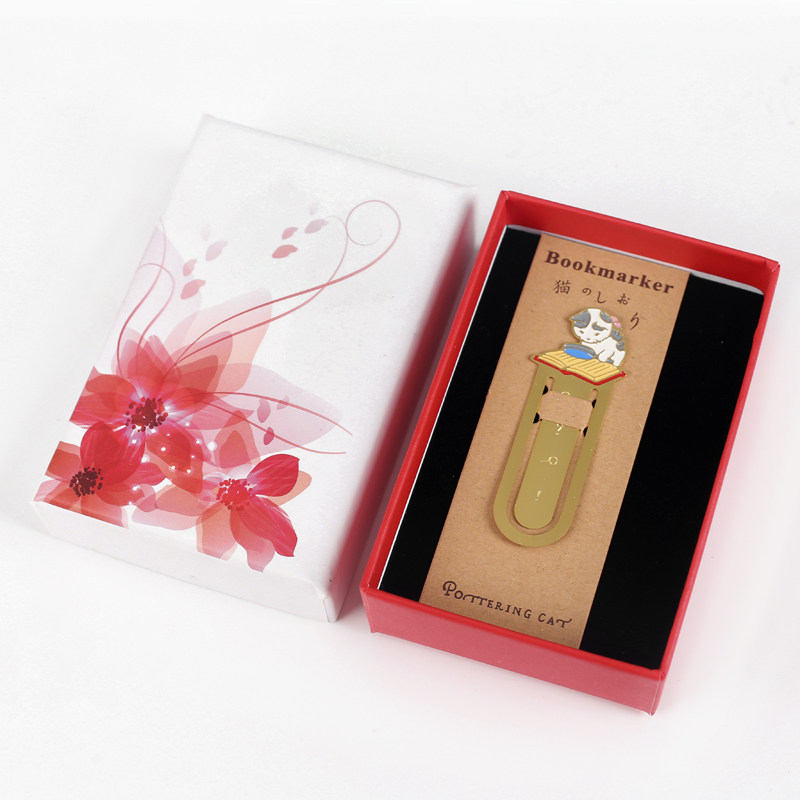 📚 慵懒猫咪日式小猫读书黄铜书签 盒装金属书签猫咪可爱小动物创意镂空精美文创文艺礼物学生读书笔记书页夹子