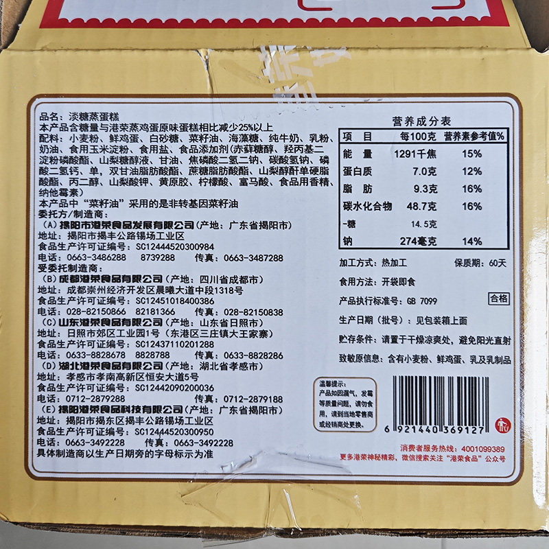 📚 港荣淡糖蒸蛋糕450g整箱早餐小面包老人健康零食休闲食品港宋港龙