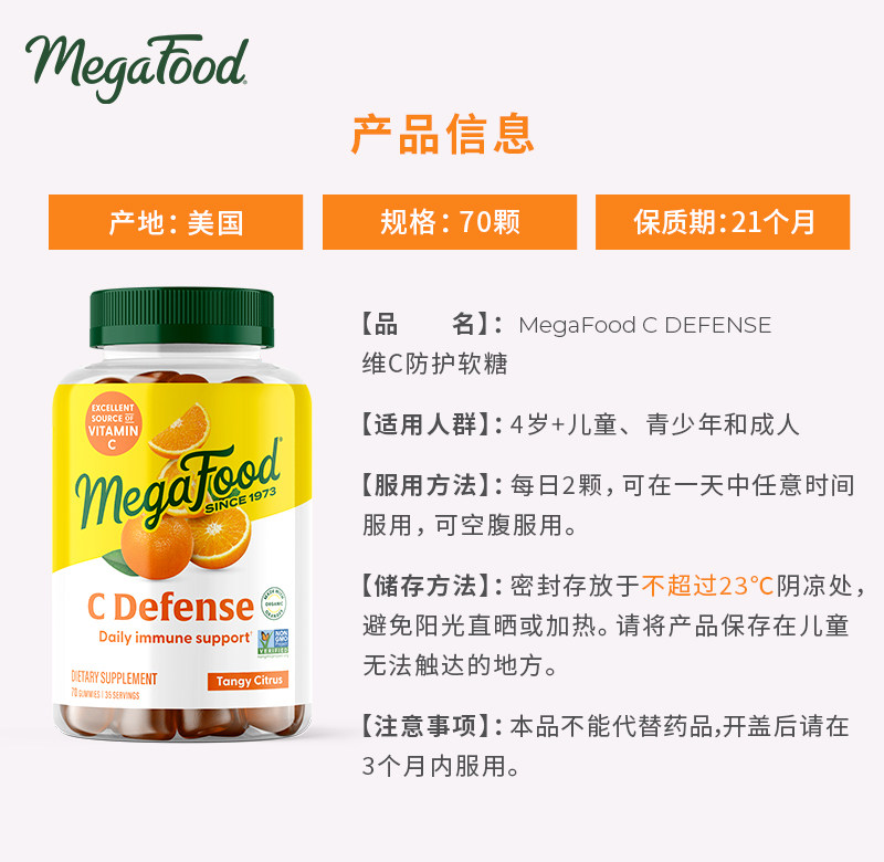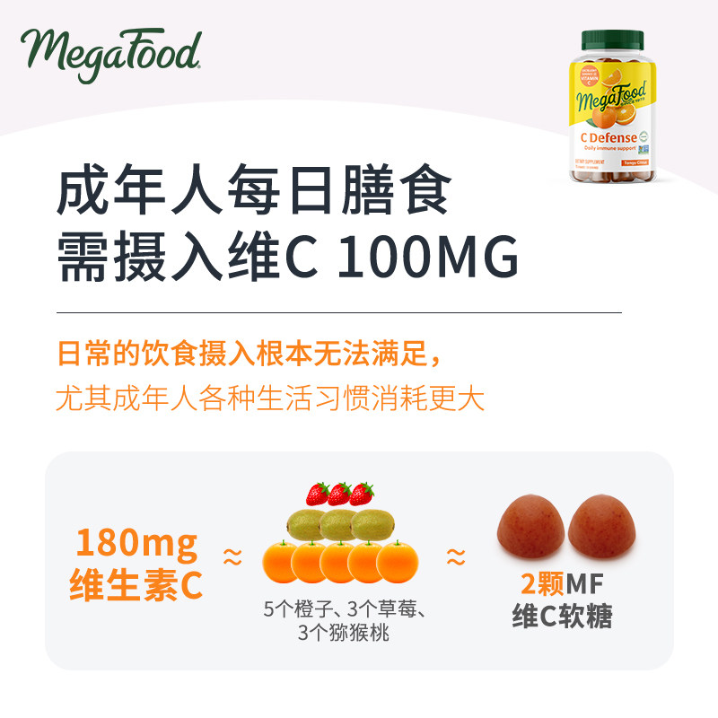 📚 MegaFood维生素C软糖儿童成人补充维生素VC免疫力水果味软糖