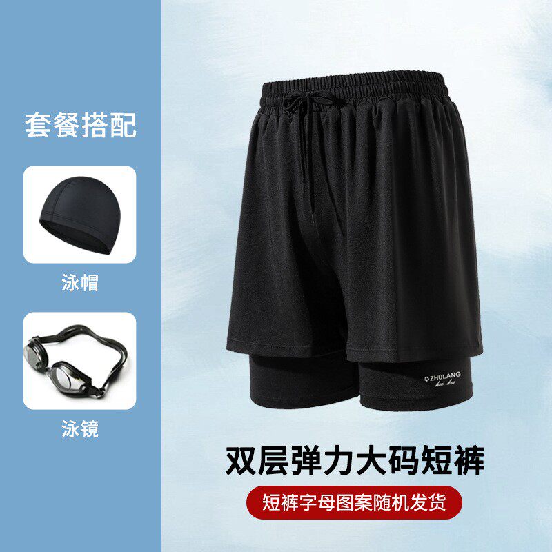 📚 超大号双层泳裤男运动裤400斤宽松加肥加大胖子码泳裤肥佬游泳裤