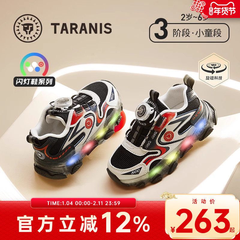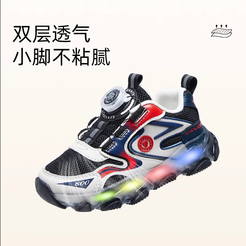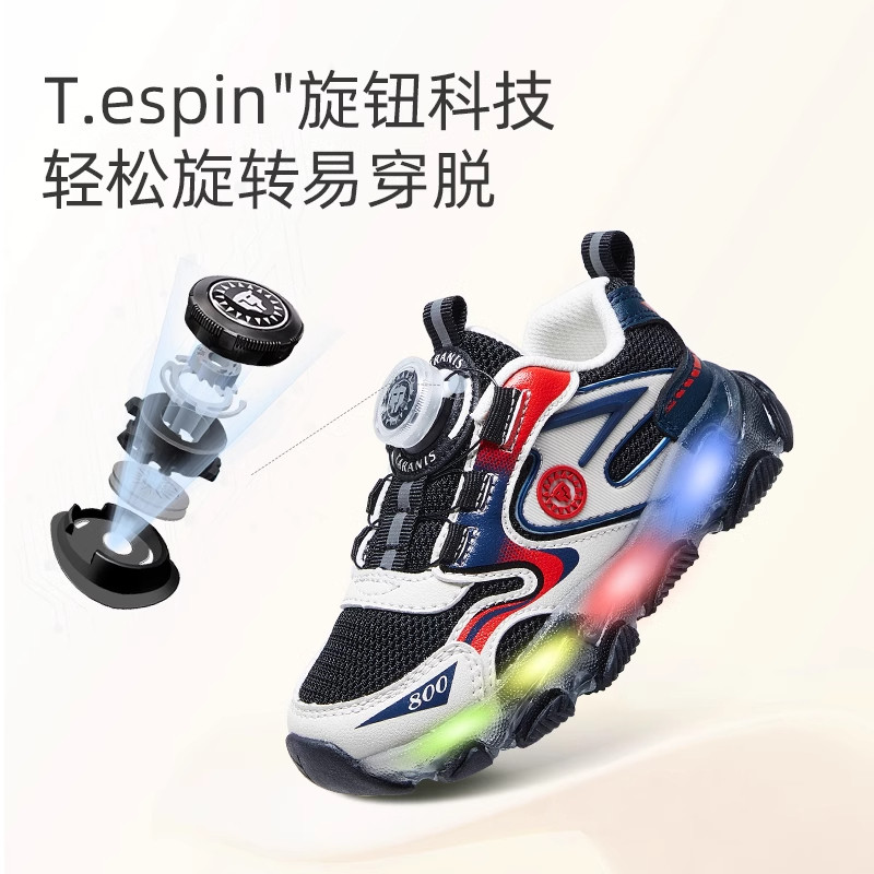 📚 泰兰尼斯童鞋春秋儿童闪灯鞋男童钮扣新年运动鞋舒适防滑发光鞋子