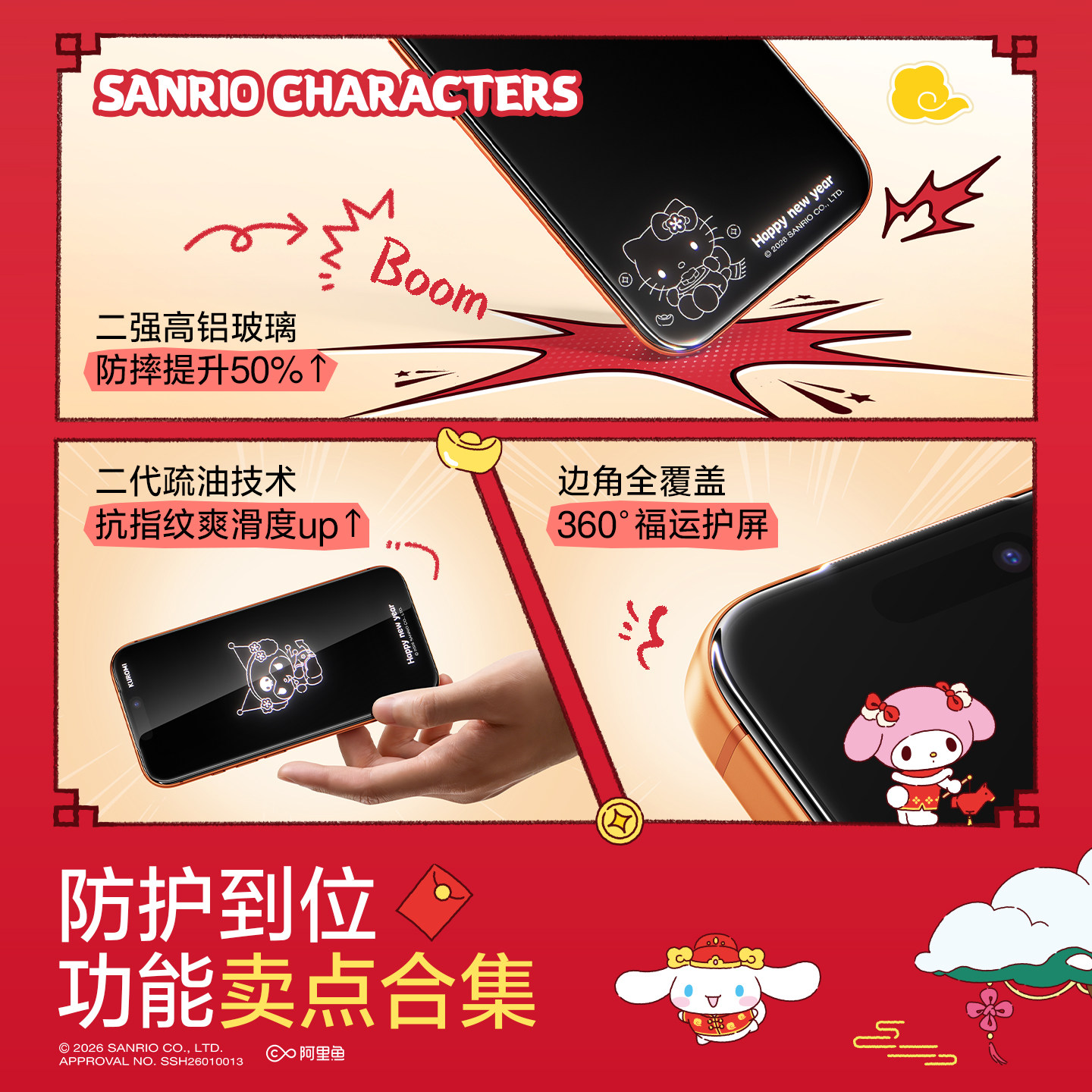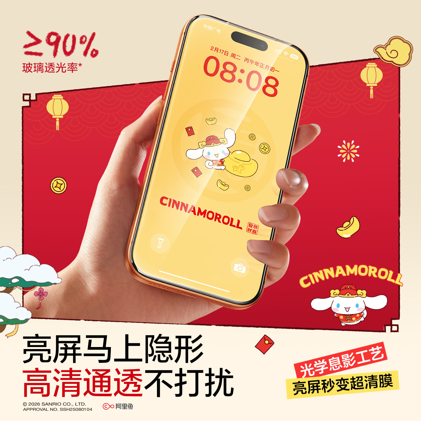 📚 闪魔三丽鸥新年息影膜kt适用苹果17Promax钢化膜iPhone16手机15膜