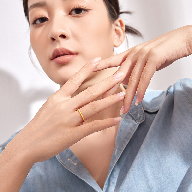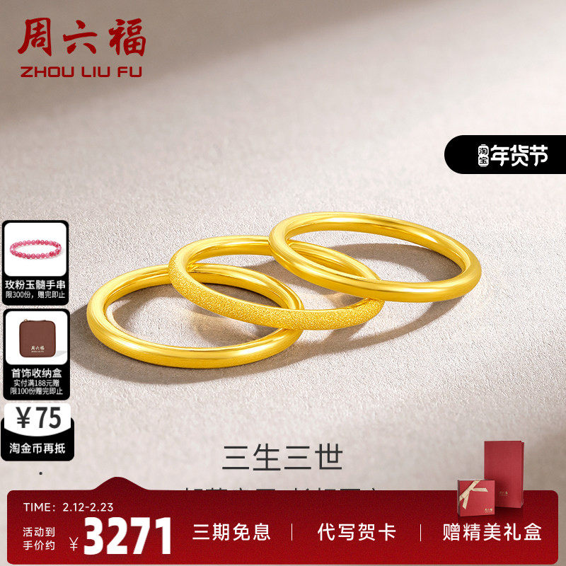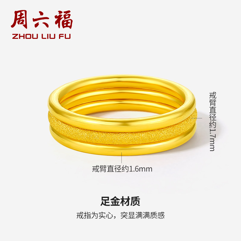 📚 周六福黄金戒指男女同款足金计价三生三世实心指环手饰送女友正品