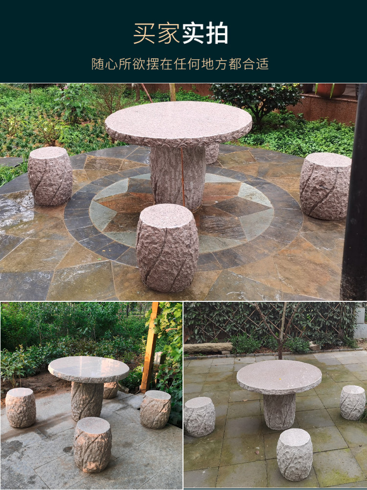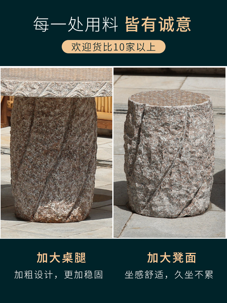 📚 石桌石凳户外庭院花园休闲一套摆件天然石头大理石花岗岩新中式