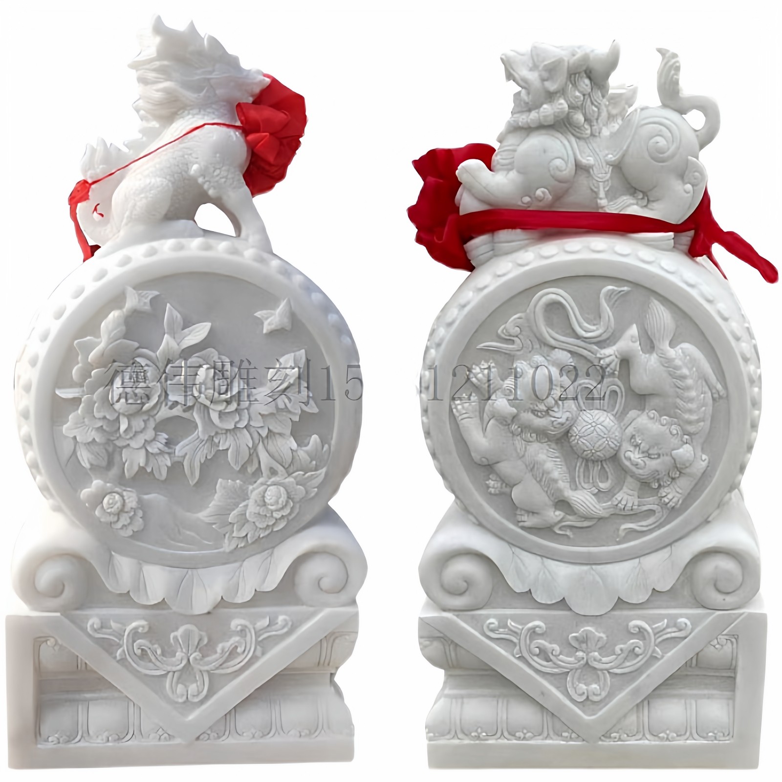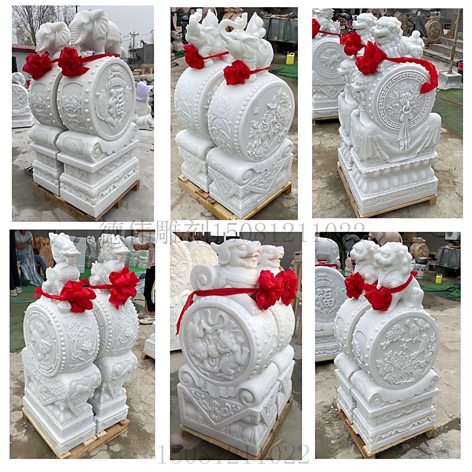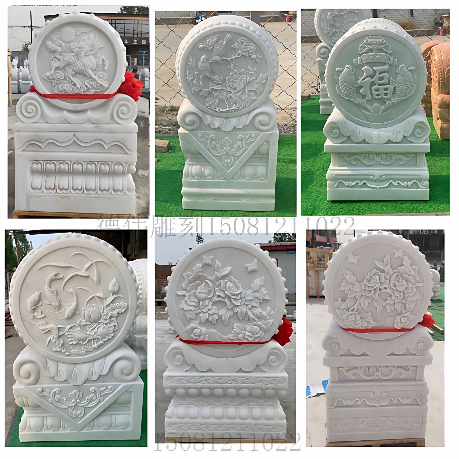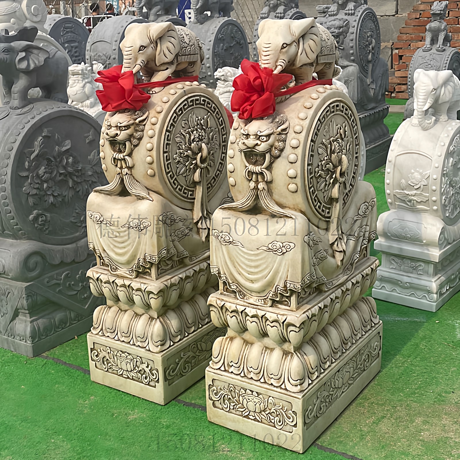 📚 石雕门墩抱鼓一对汉白玉花开富贵石鼓晚霞红青石小象貔貅门口摆件