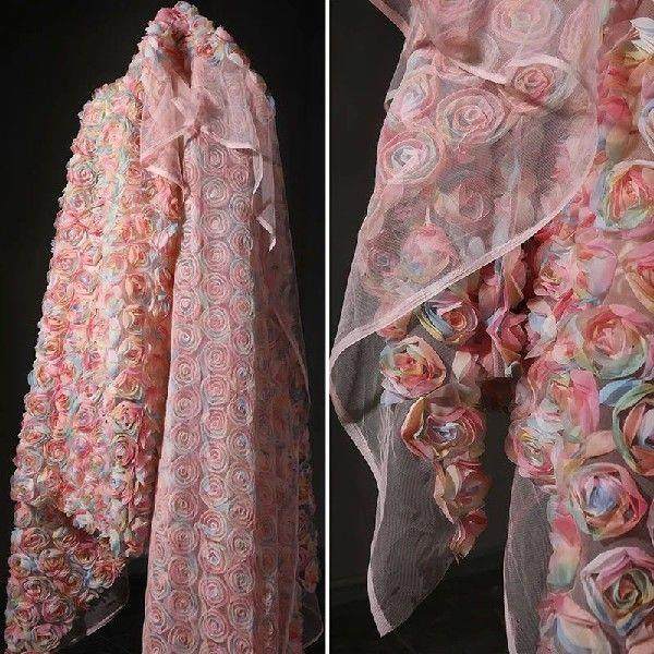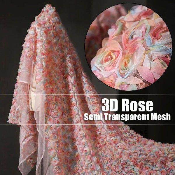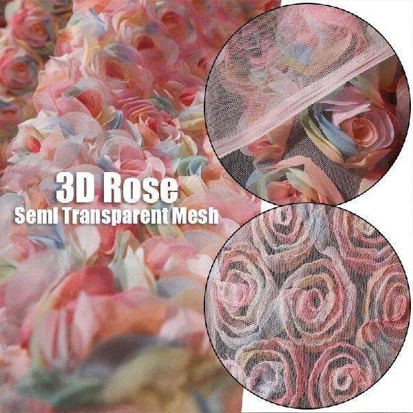 📚 Chiffon Rose Embroidered Flower Yarn Fabric 3D Rose Floral