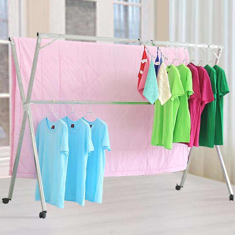 📚 双杆式阳台晾衣架落地折叠晒衣架简易X型室内凉衣服架单杆挂被子