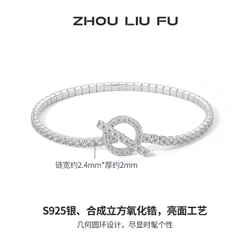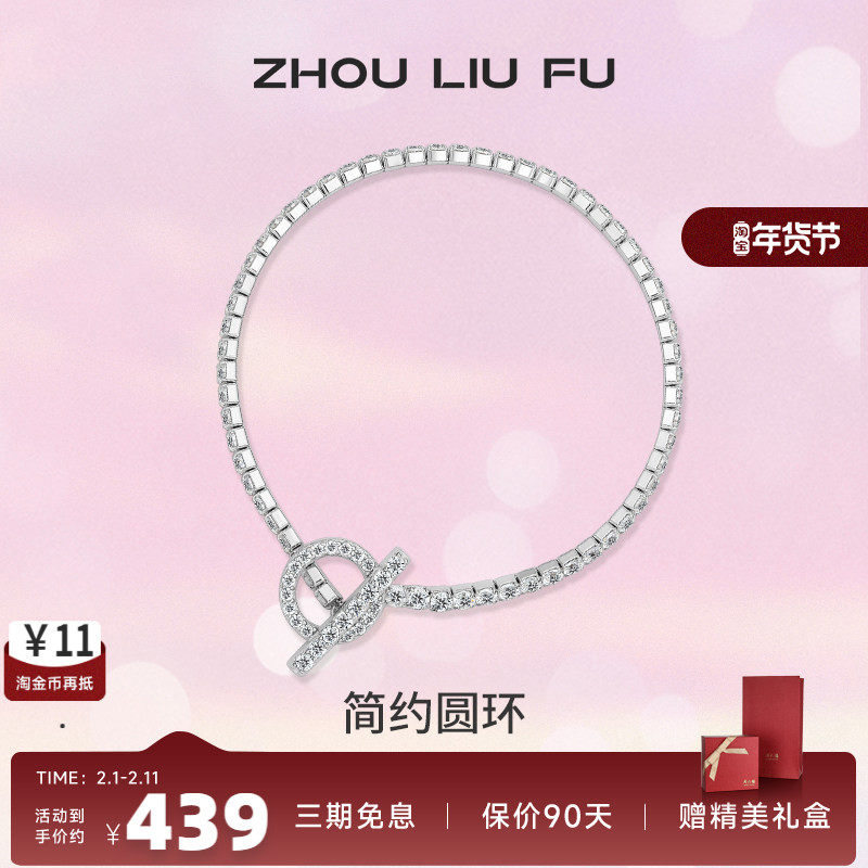📚 周六福S925纯银圆环手链ins冷淡风轻奢碎银手环简约送女友礼物