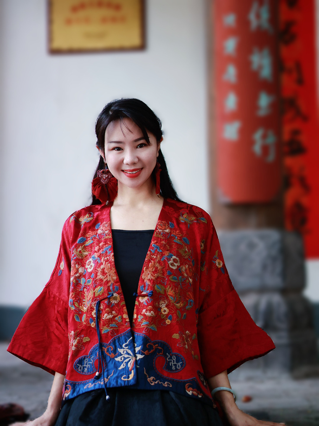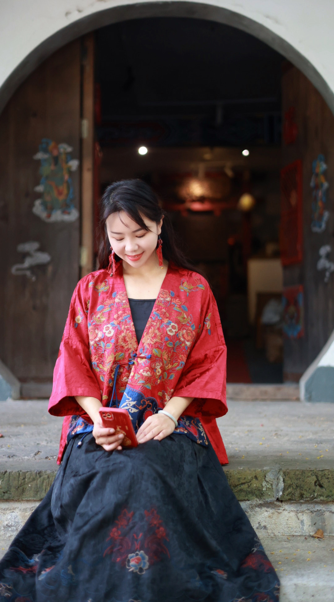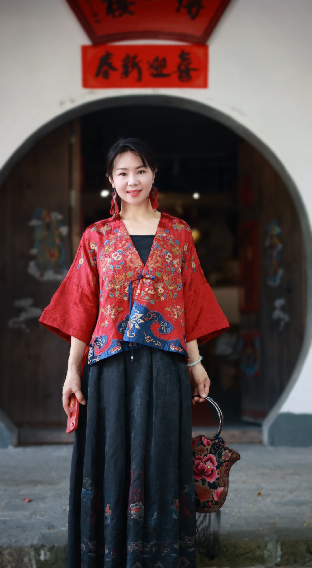 📚 千椿物喜新中式国风民族风重工满刺绣红色落肩披肩外套开衫上衣女