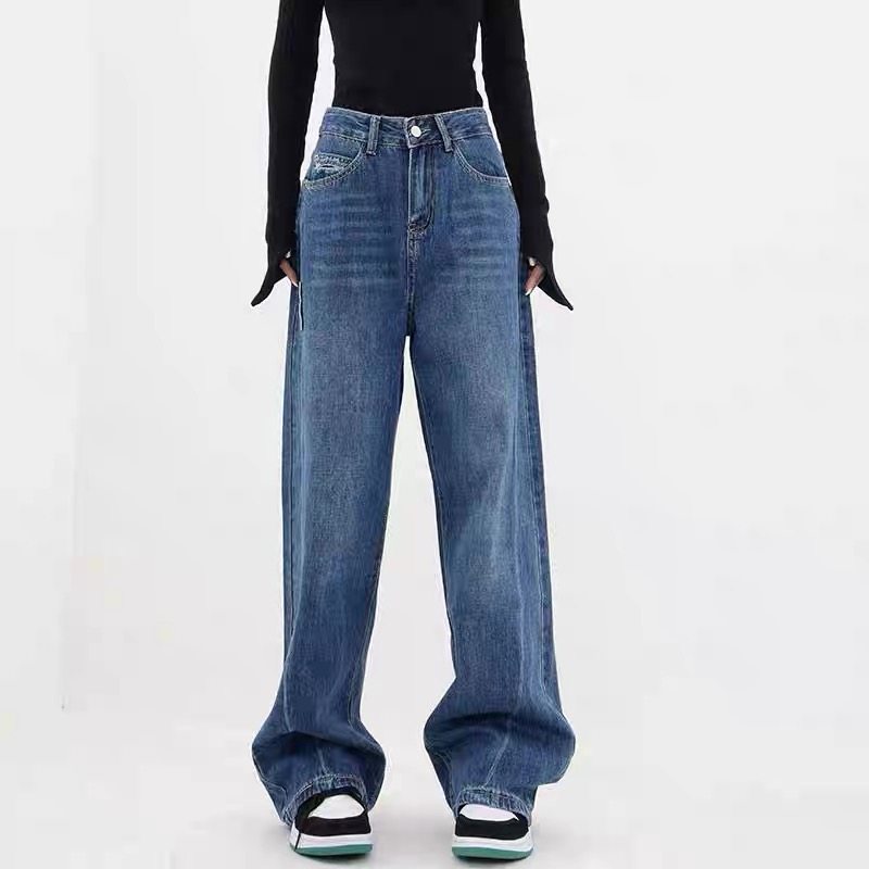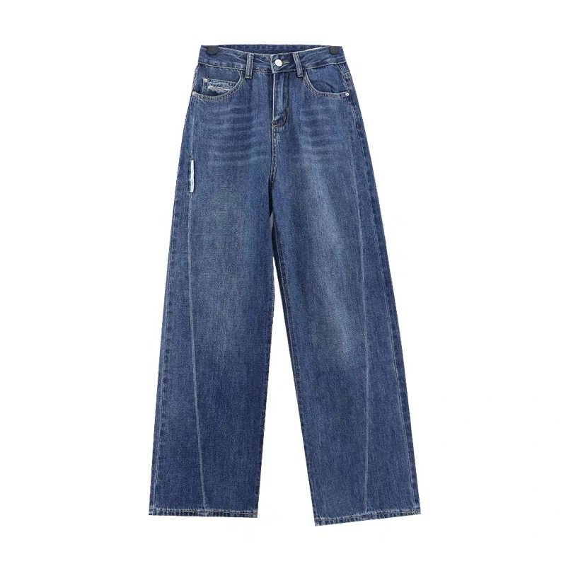 📚 爆款订单款女春秋高腰破洞阔腿裤拼接牛仔裤直筒裤显瘦拖地裤复古