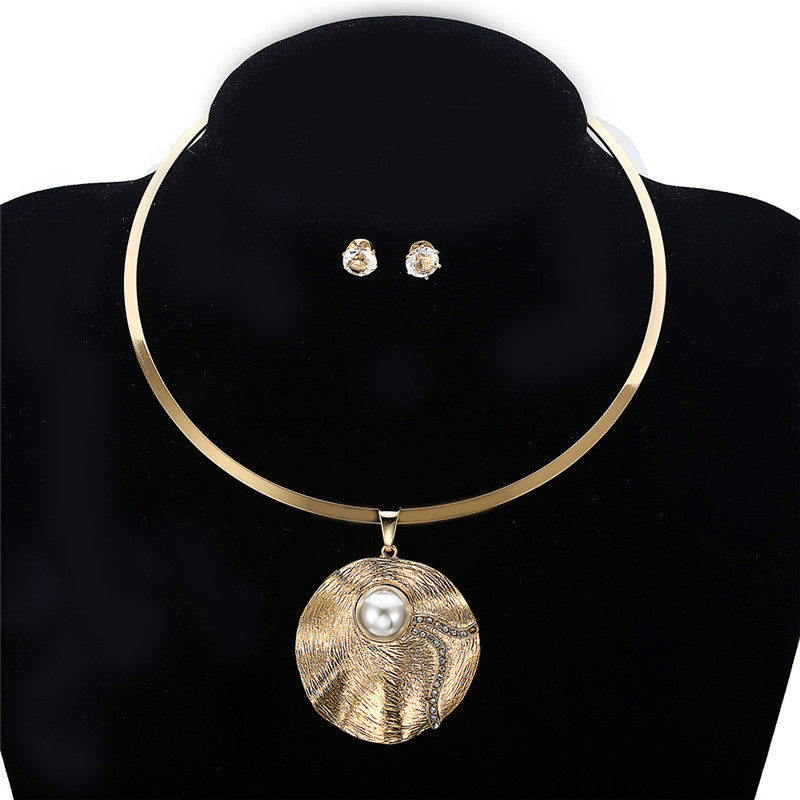 📚 pearl necklace women set jewelry金色欧美锁骨链珍珠项链耳钉