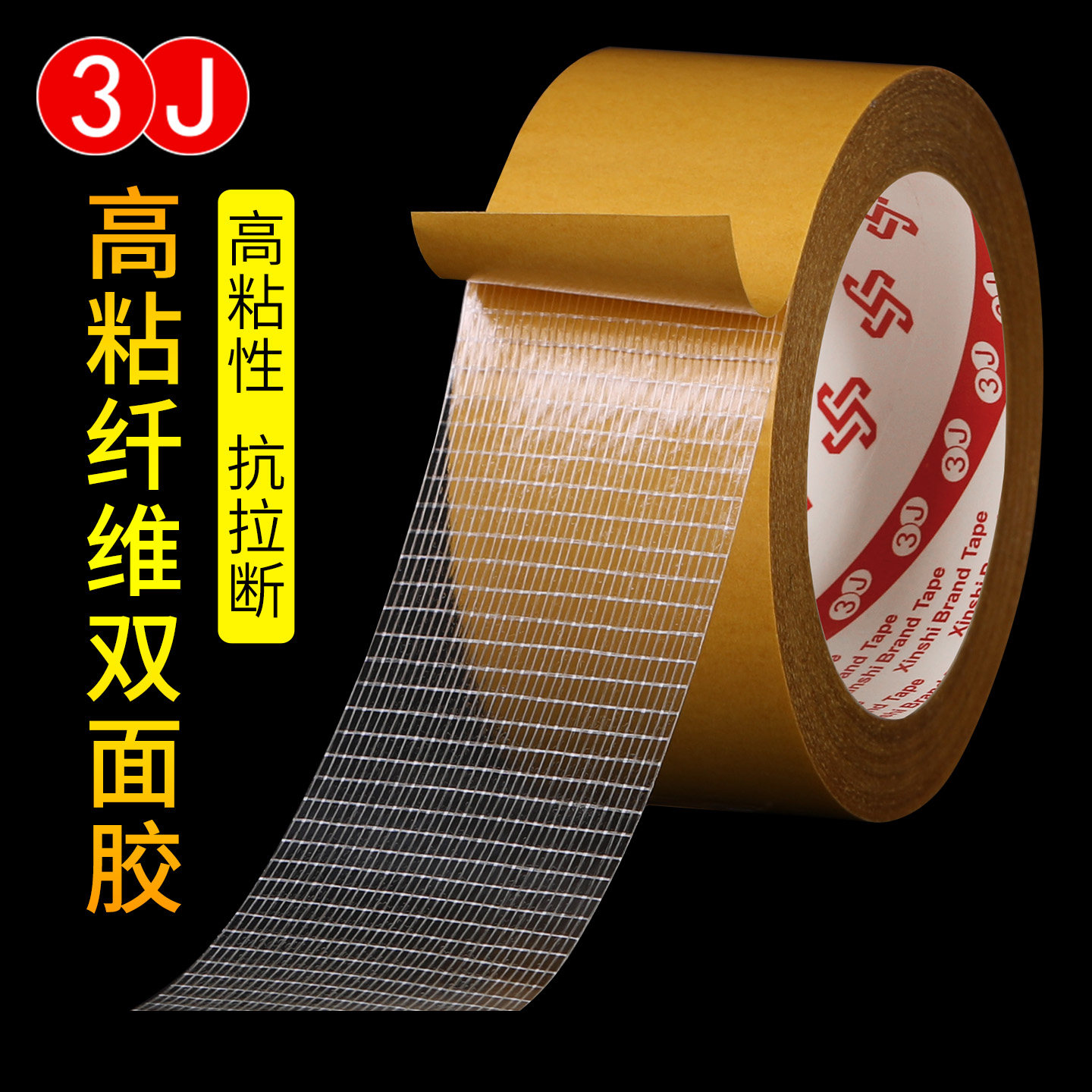 📚 3J纤维双面胶强力高粘度无痕双面胶带强粘高网格玻璃纤维胶高强力双面胶带布基胶带超薄透明不留痕超粘胶带