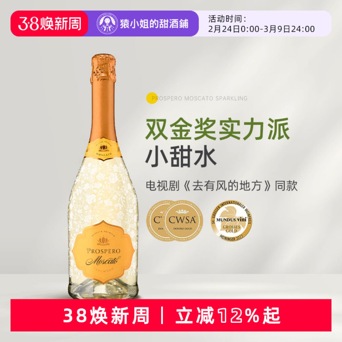 📚 明星同款Moscato小甜水 西班牙米兰公爵莫斯卡托甜白起泡葡萄酒