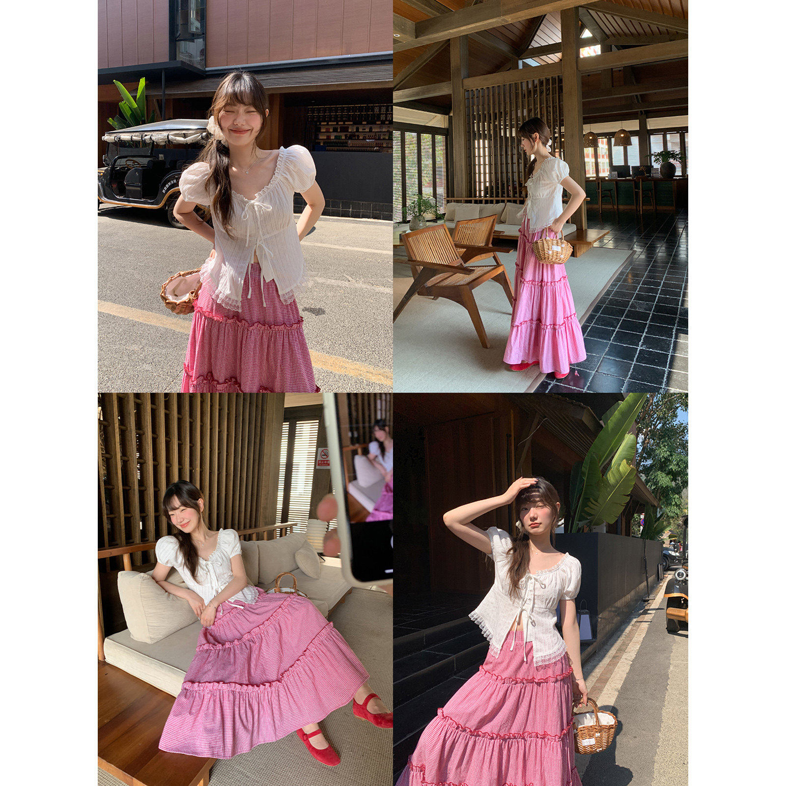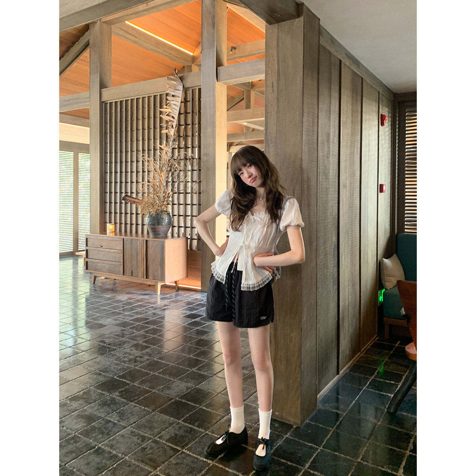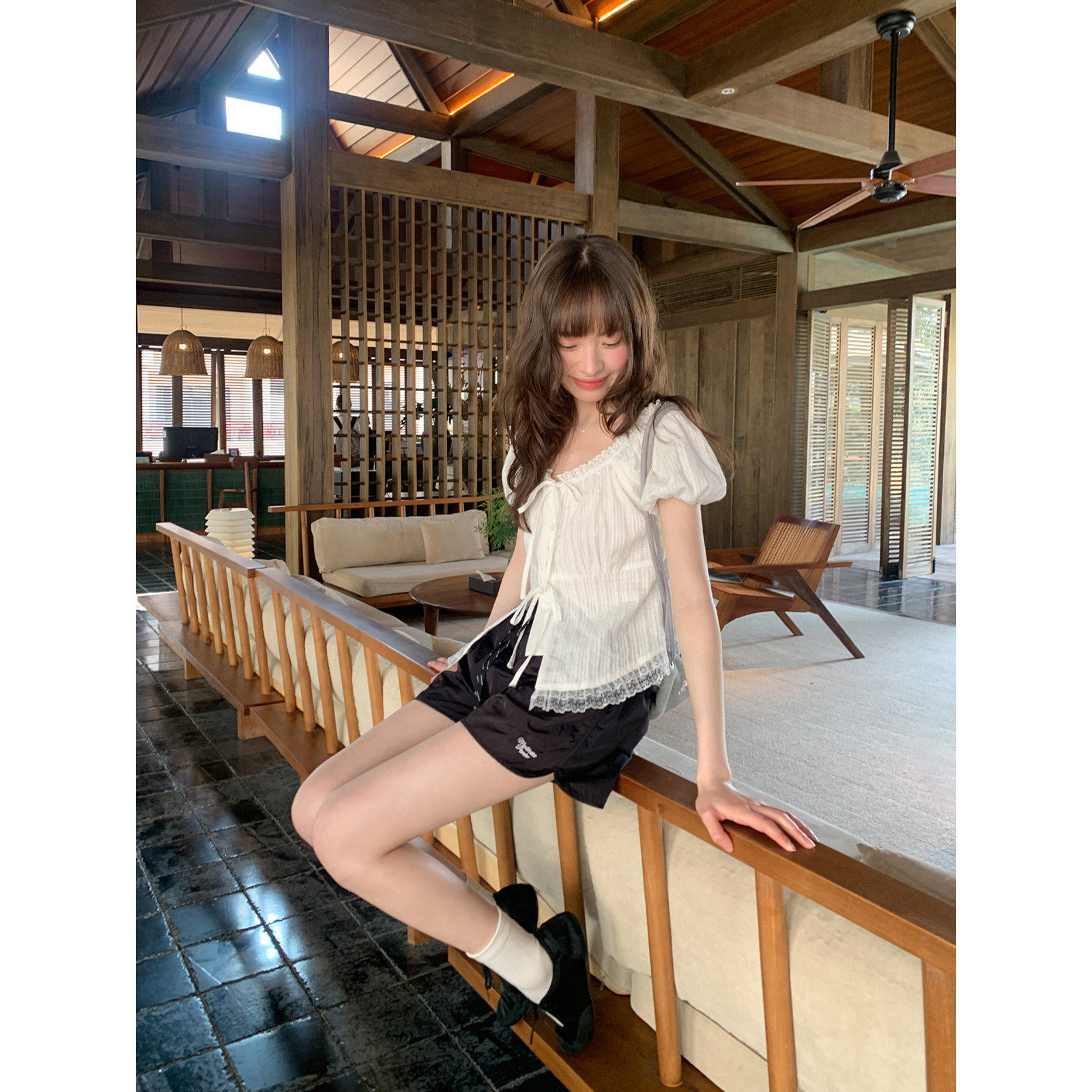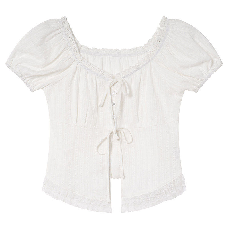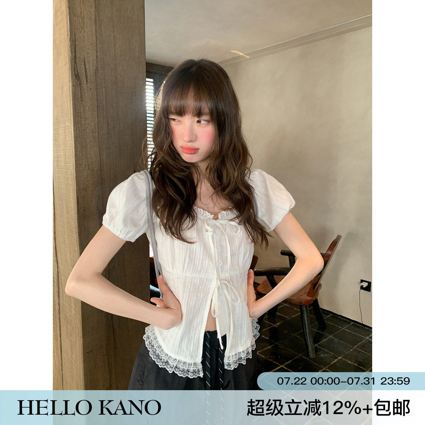 📚 你好卡农 甜美风蕾丝边绑带短袖衬衫女夏季洋派小衫独特别致上衣
