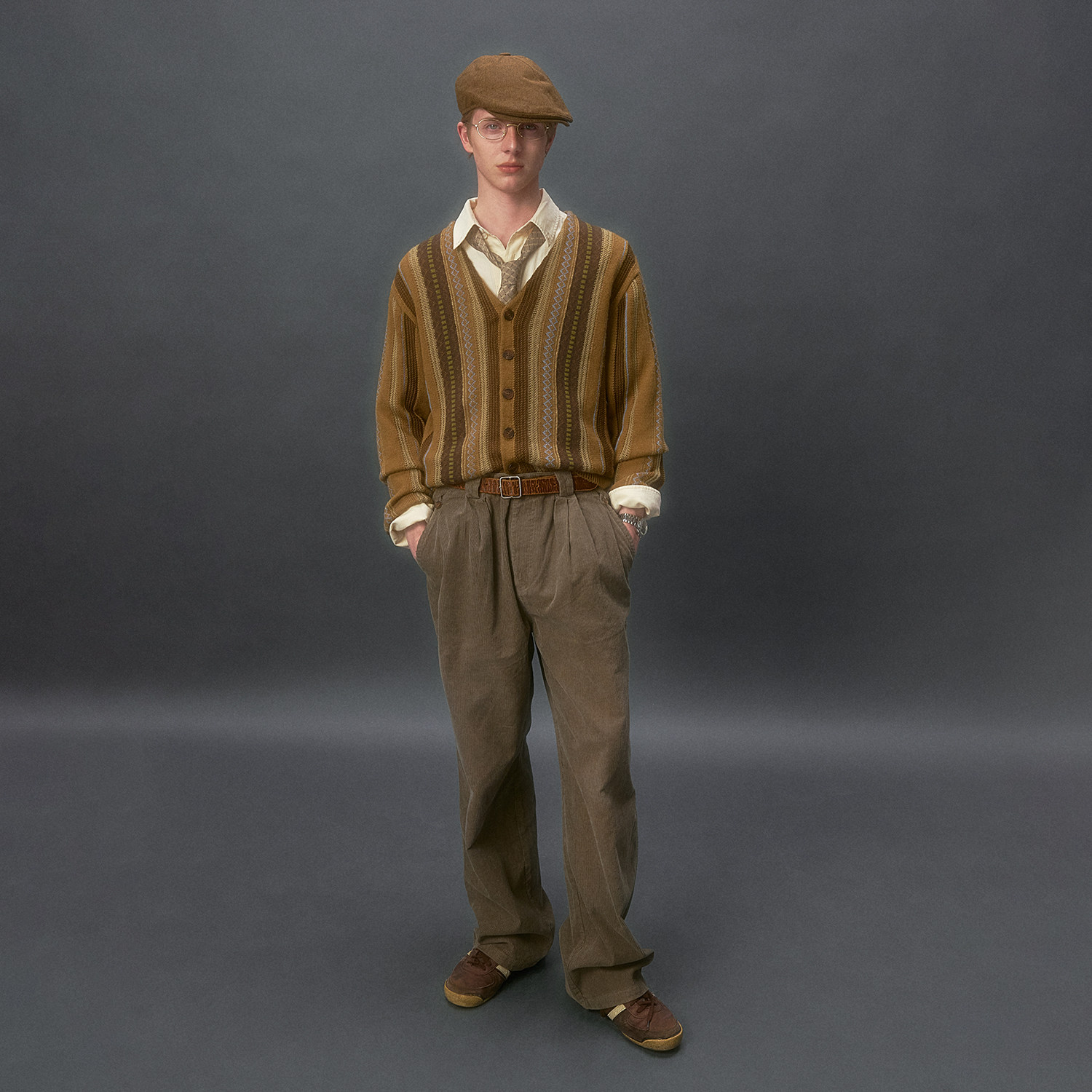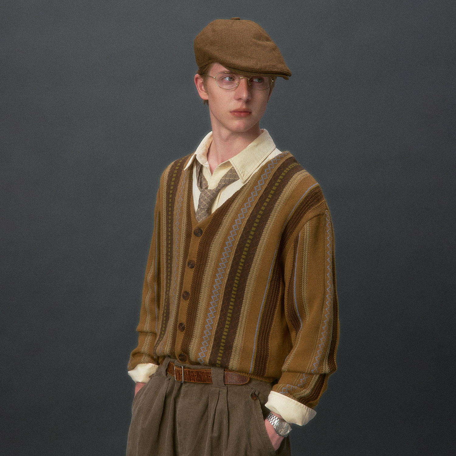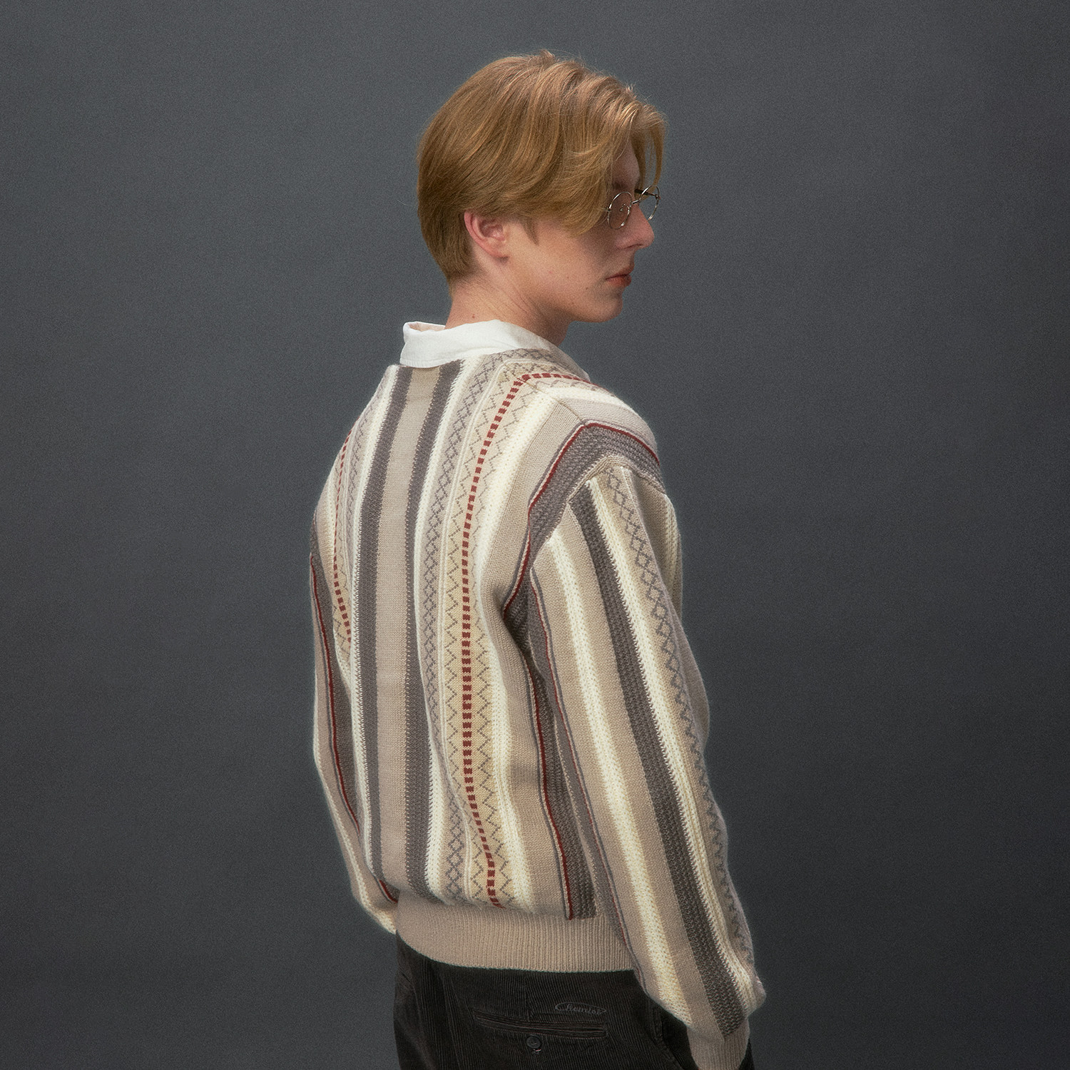 📚 化学制品 老爸的条纹针织开衫 K2_BWN_GRY_SWEATER