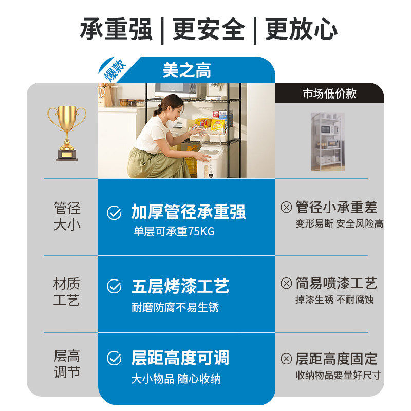 📚 美之高空间收纳多功能置物架碳钢客厅厨房可调节层高储物收纳架子