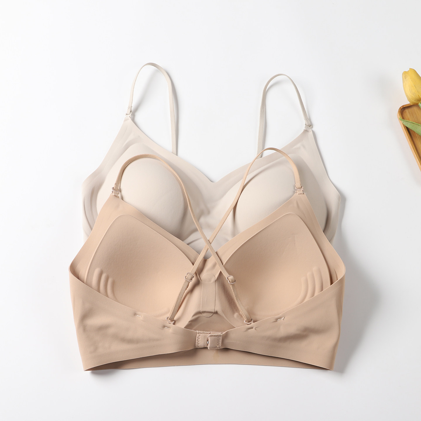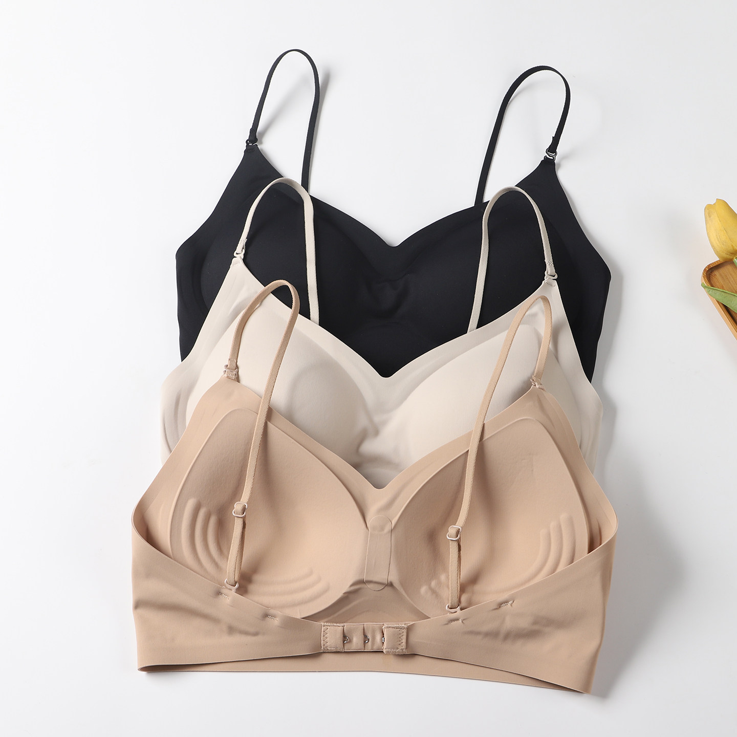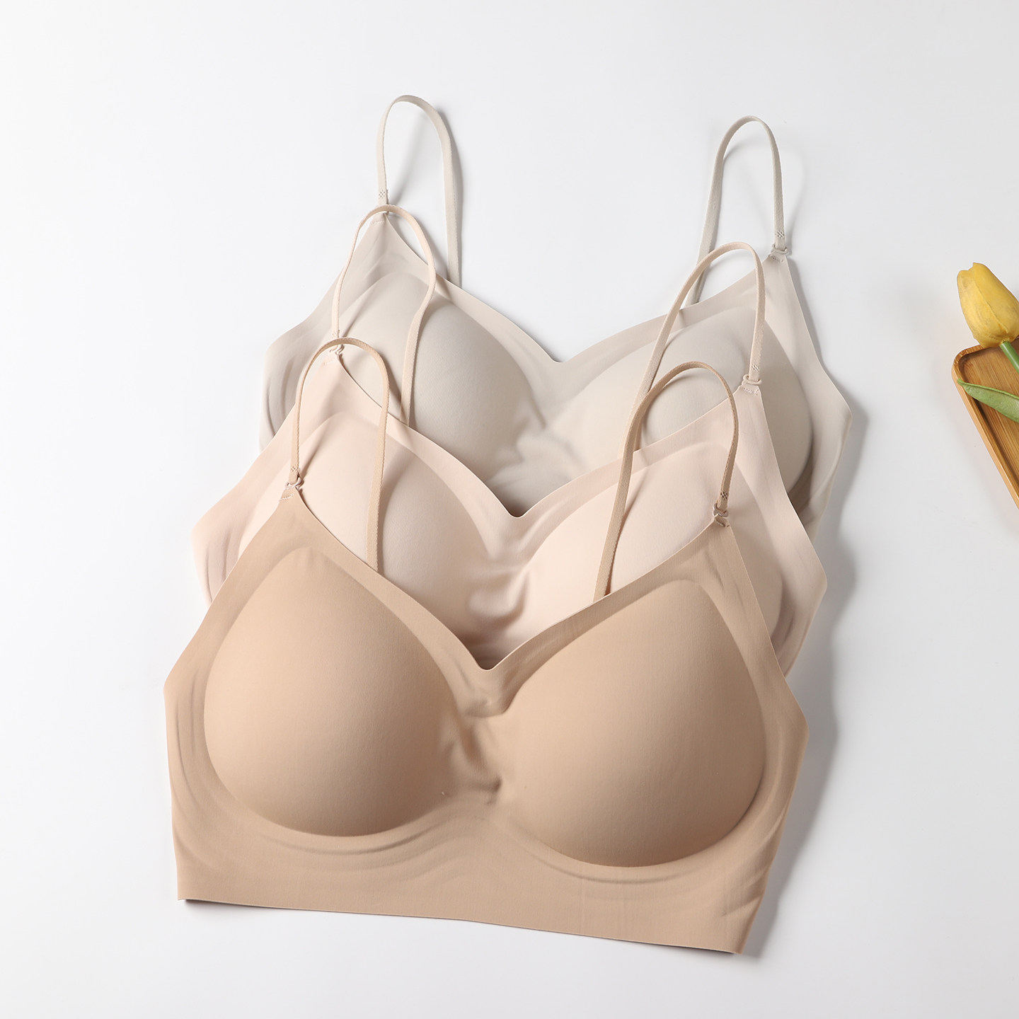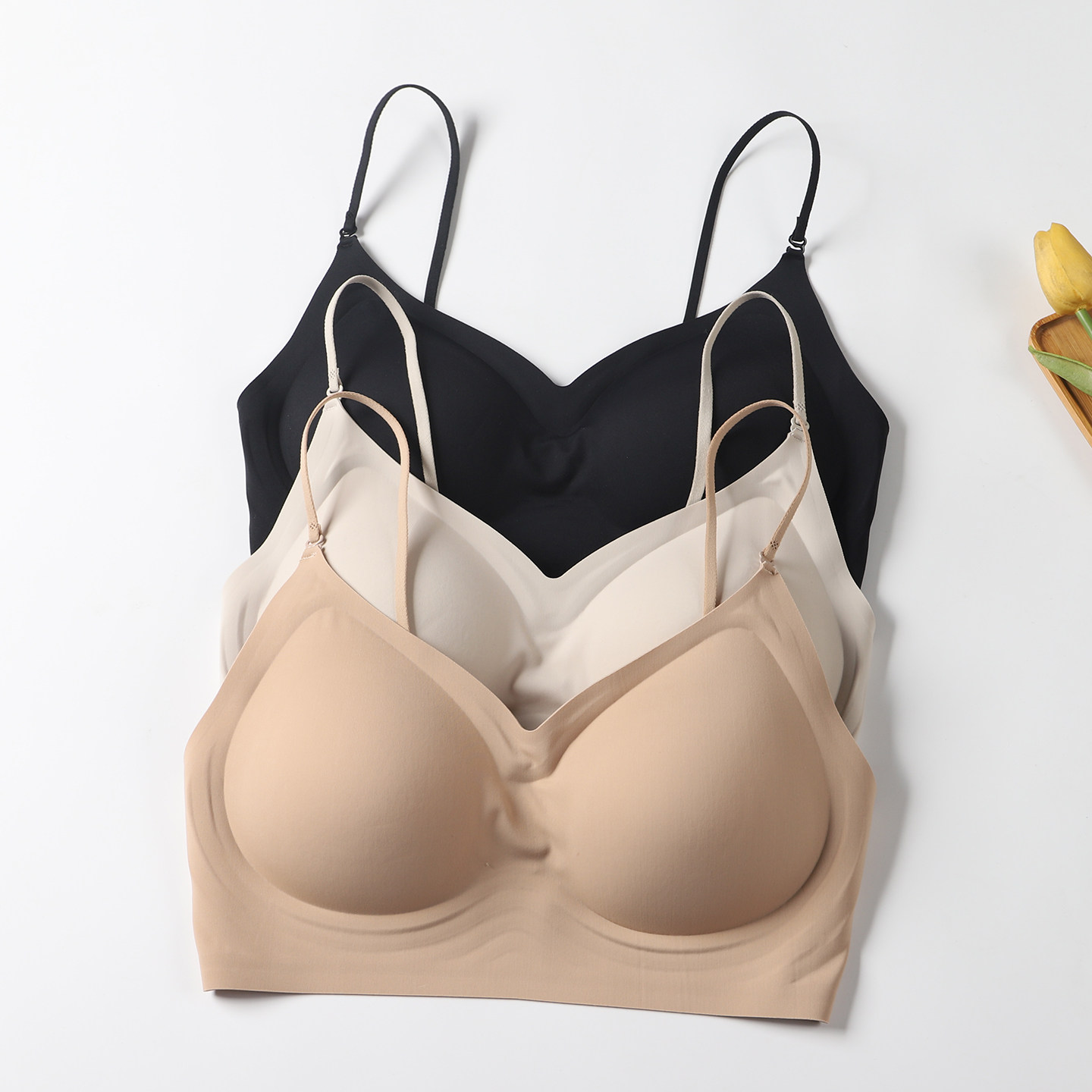 📚 无痕隐形粉底液美背内衣细肩带抹胸文聚拢小胸厚胸垫一体背心薄夏