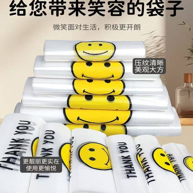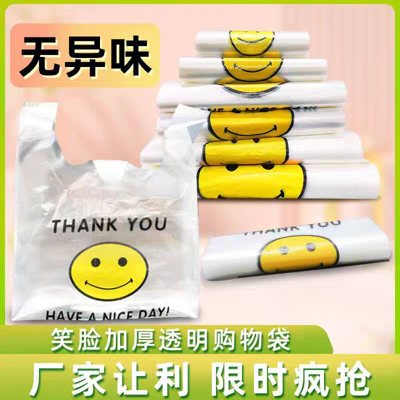 📚 笑脸一次性方便袋塑料袋厂家批发透明打包袋塑料袋手提背心马夹袋
