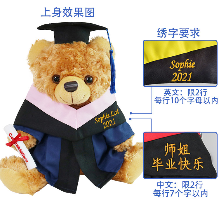 📚 毕业公仔袍硕士服玩偶小熊labubu学士服理科文科工科学士帽蓝黑袍