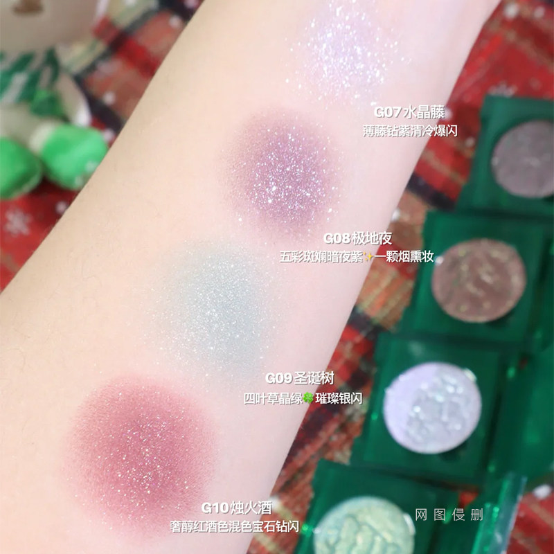 📚 灰调的山野玫瑰!荔萌圣诞限定单色眼影冷调紫棕豆沙玫瑰粉细闪