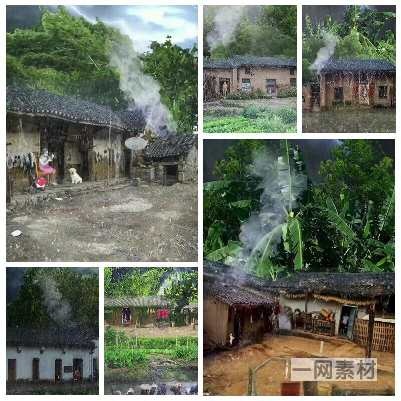 📚 乡村暴雨竖屏视频素材农村茅草房屋瓢泼大雨电闪雷鸣LED大屏背景
