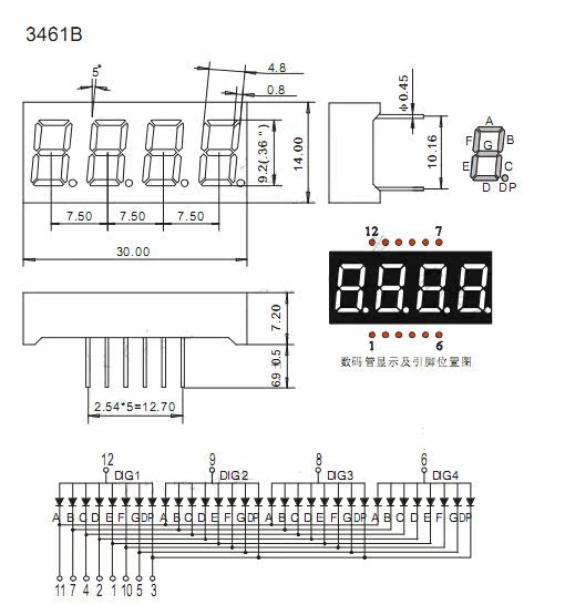 📚 数码管 0.36英寸 4位红色 共阳 3641BS 4位一体 HS410361K