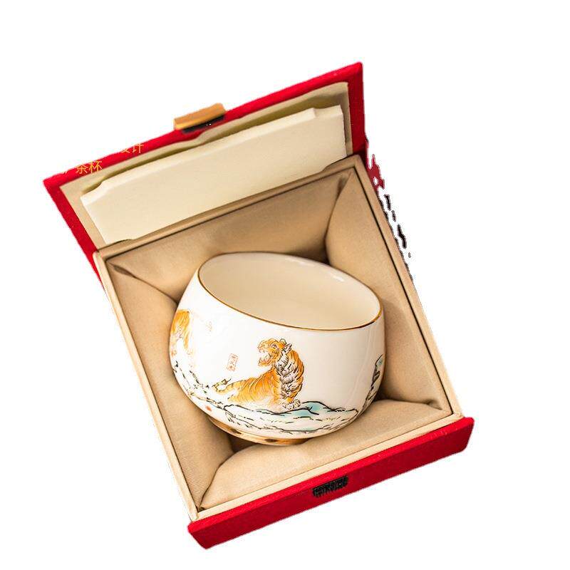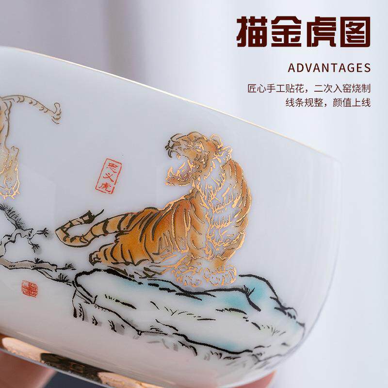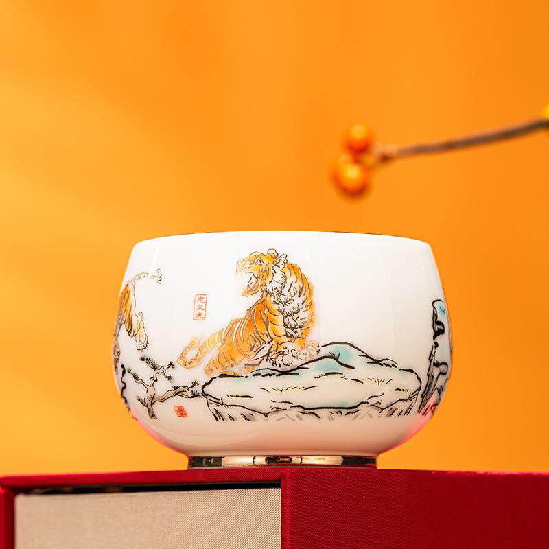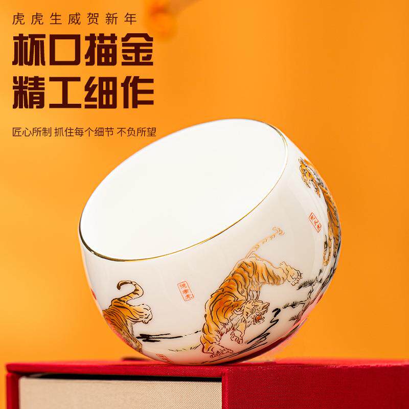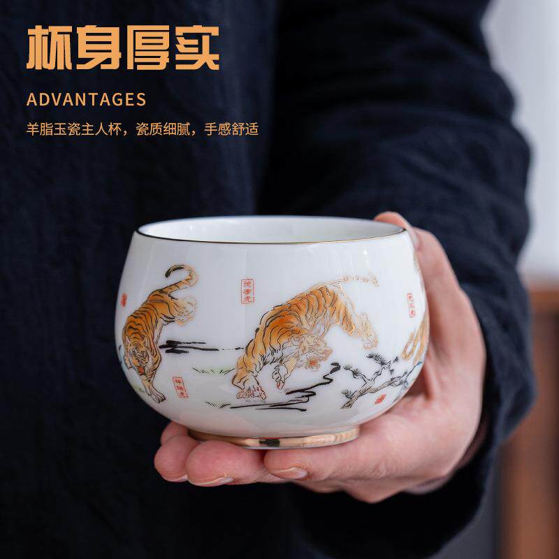 📚 如瓷动人羊脂玉瓷五虎茶杯陶瓷茶具家用品茗杯个人专用主人杯大号