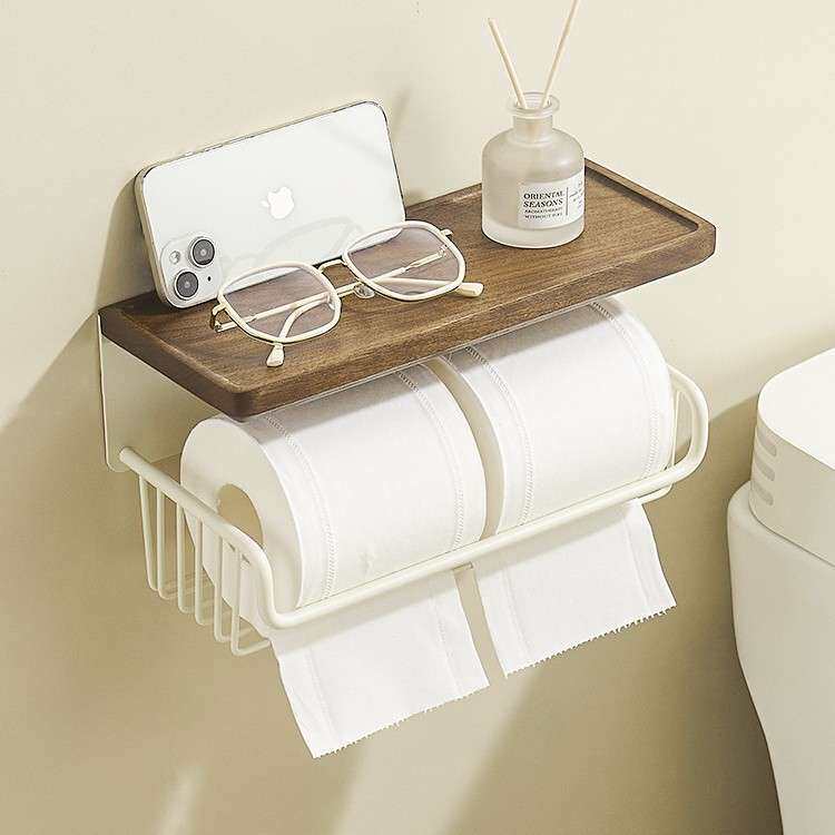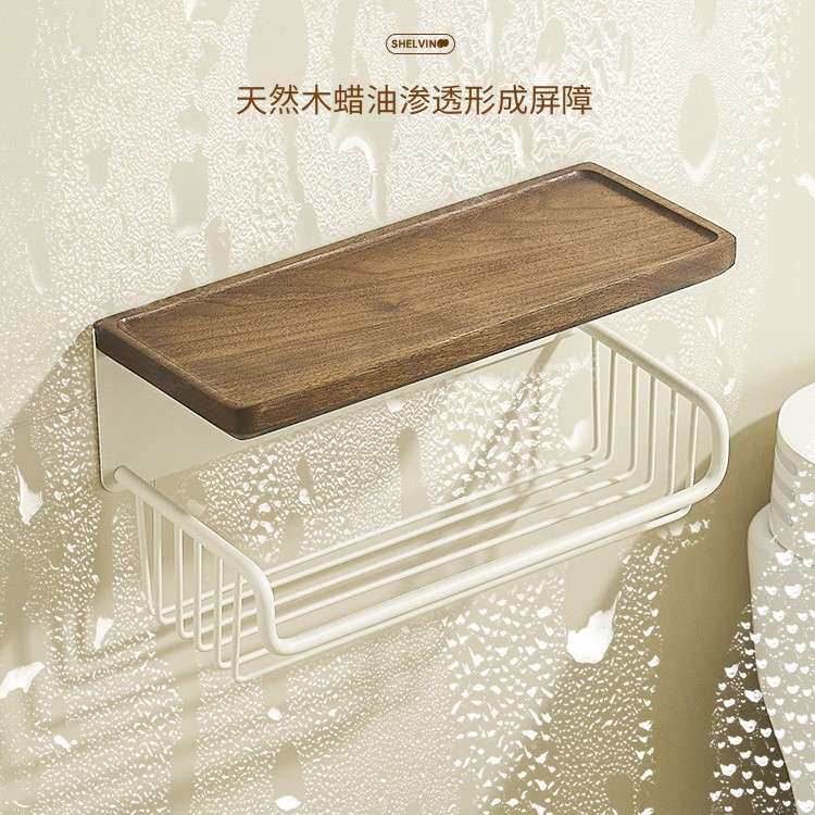 📚 美拉德胡桃木卫生间厕纸盒置物架免打孔浴室卫生间抽纸洗脸巾纸篓