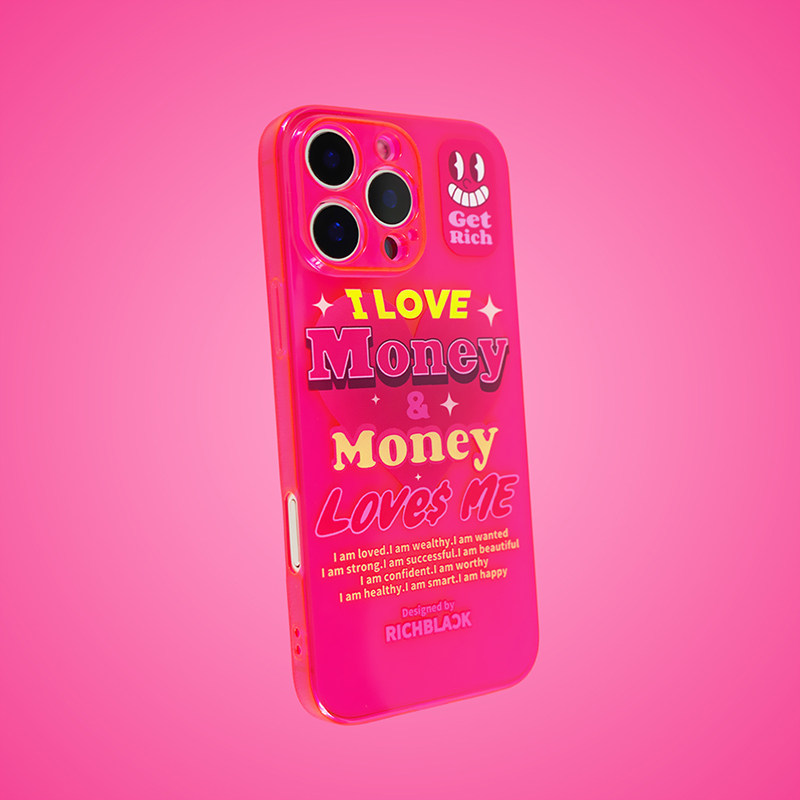 📚 RichBlack原创设计文字英文字母图案印花 re60 荧光粉手机壳适用于苹果17iPhone16ProMax
