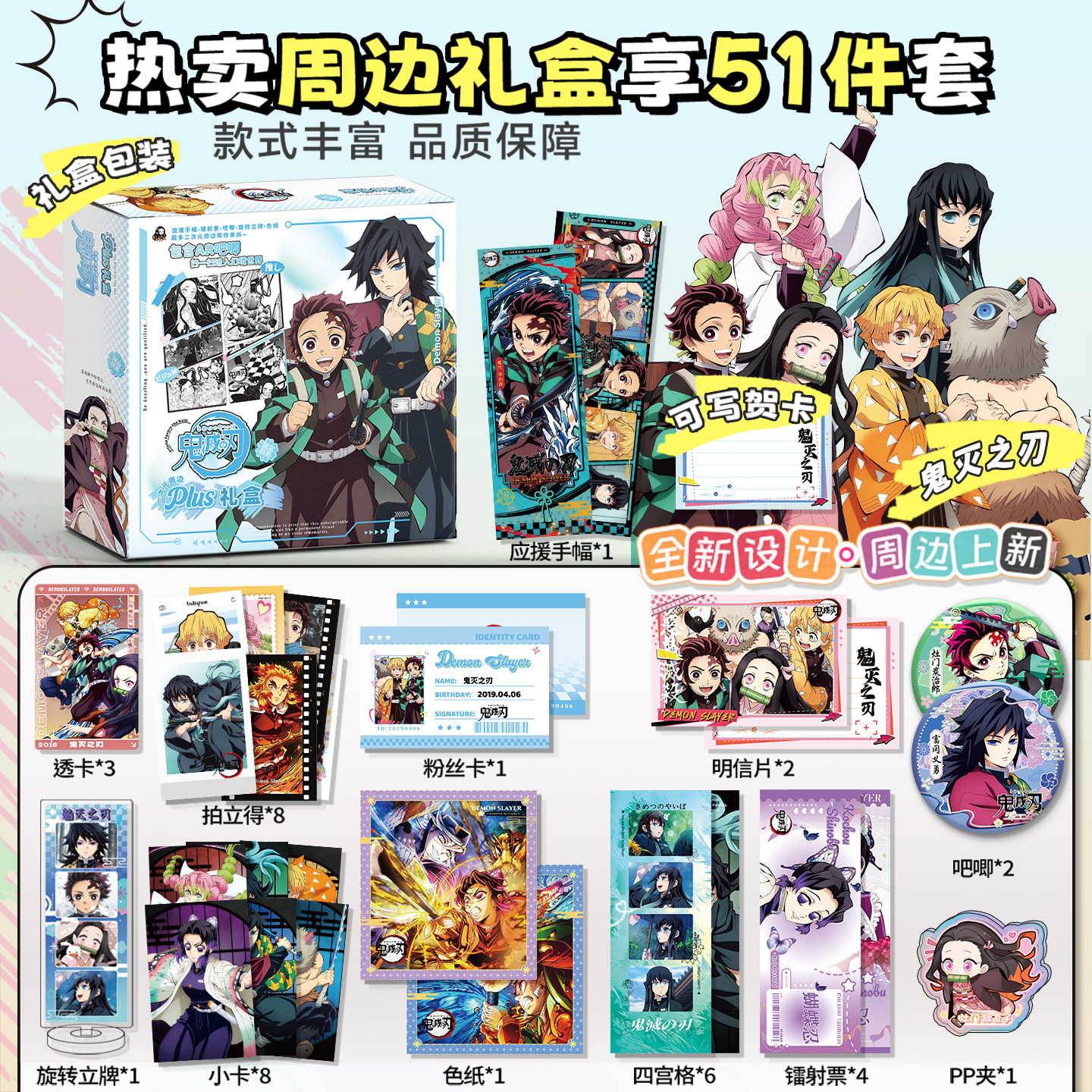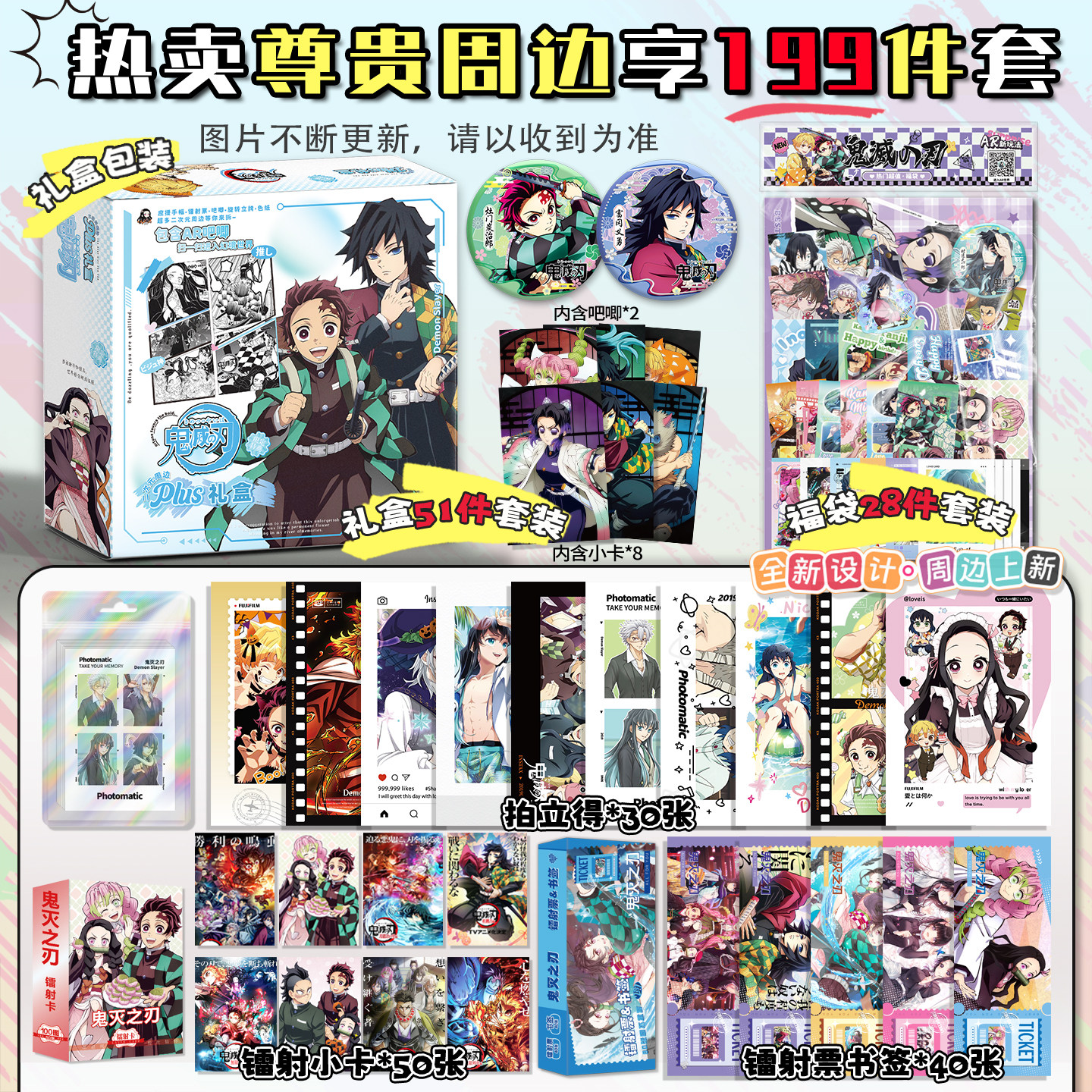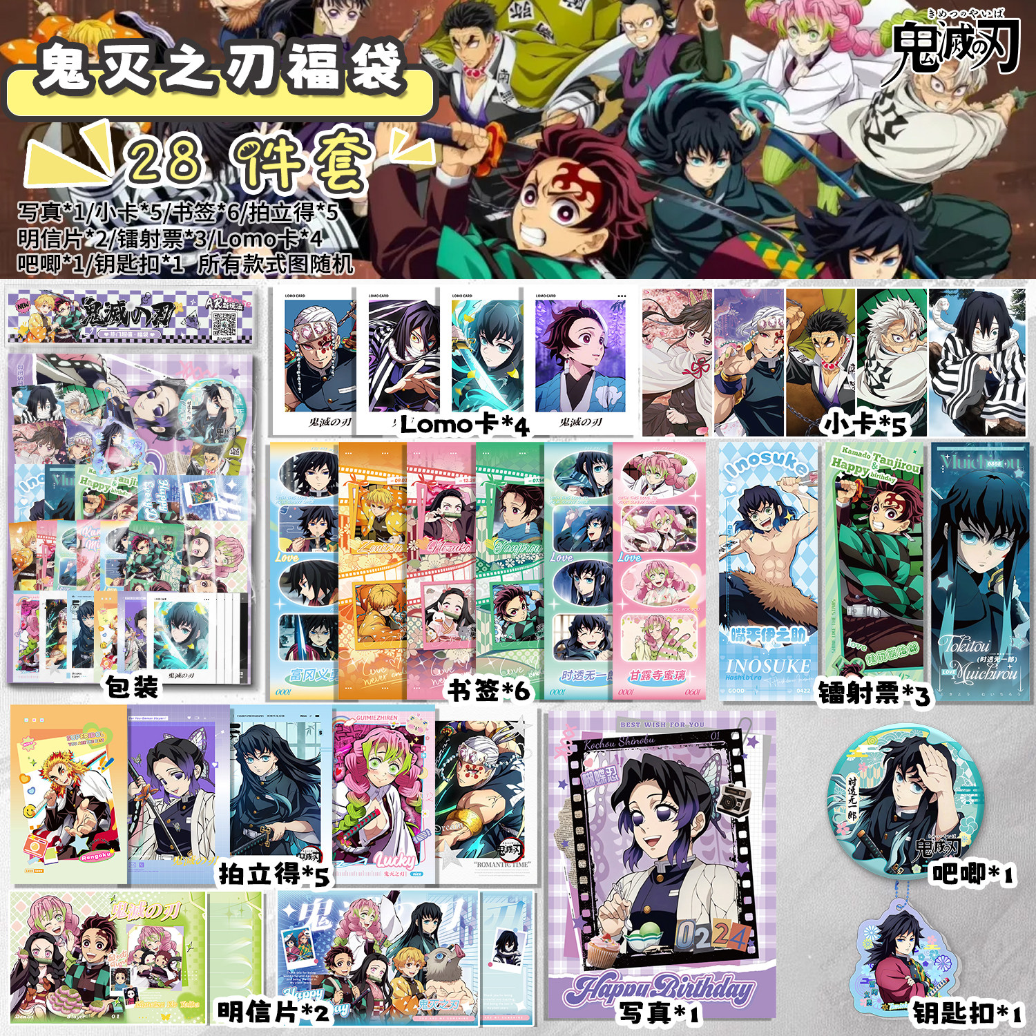 📚 鬼灭之刃周边礼盒吧唧盲盒徽章小卡镭射票书签周边福袋生日礼物