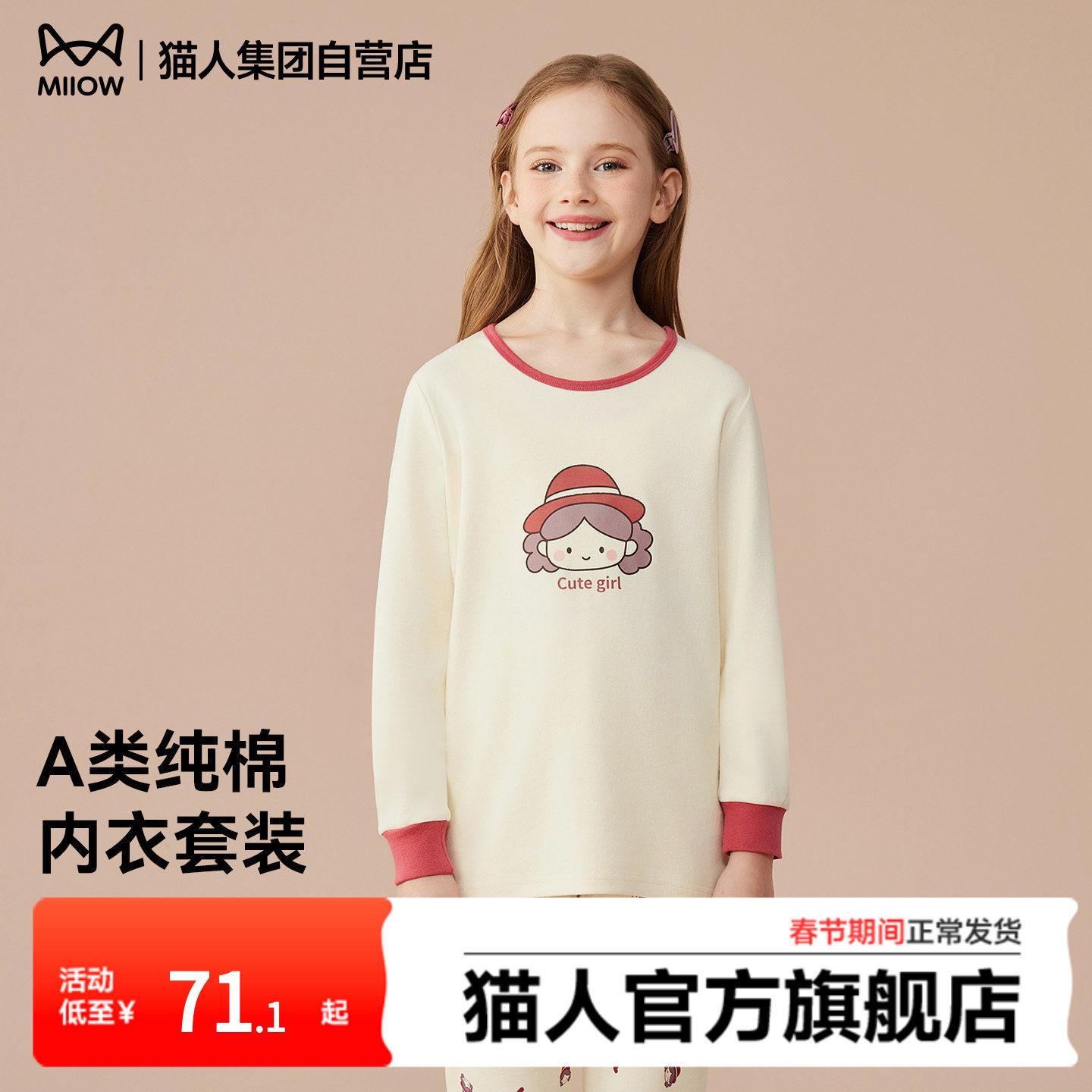 📚 猫人新款儿童纯棉保暖内衣套装全棉a类秋冬女中大童秋衣裤两件套