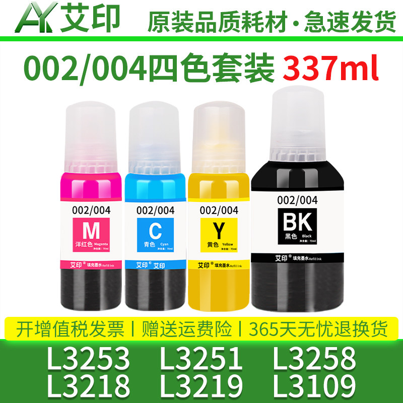 📚 适用EPSON爱普生L3253墨水L3251 L3258 L3218 L3219 3109彩色黑色墨仓喷墨打印机连供补充装油墨水盒原装品质