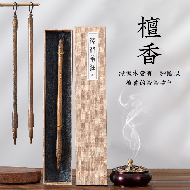 📚 梅林笔庄狼毫毛笔大师级书法专用笔国画初学者软笔中楷专业级套装隶书楷书行书文房四宝学生入门绿檀狼嚎毛笔