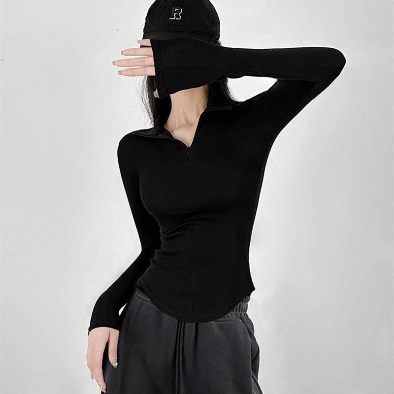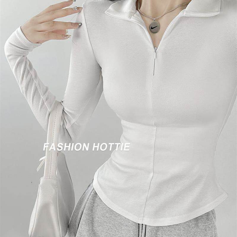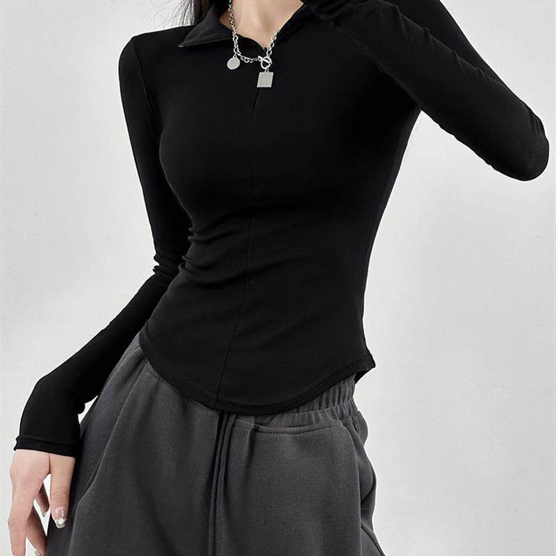 📚 长袖t恤女2026秋冬季修身打底内搭显瘦辣妹polo领加绒秋冬打底衫