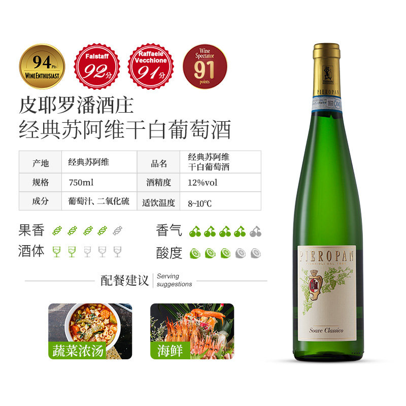 📚 Soave教父·意大利皮耶罗潘经典苏阿维干白葡萄酒聚餐干杯非甜型