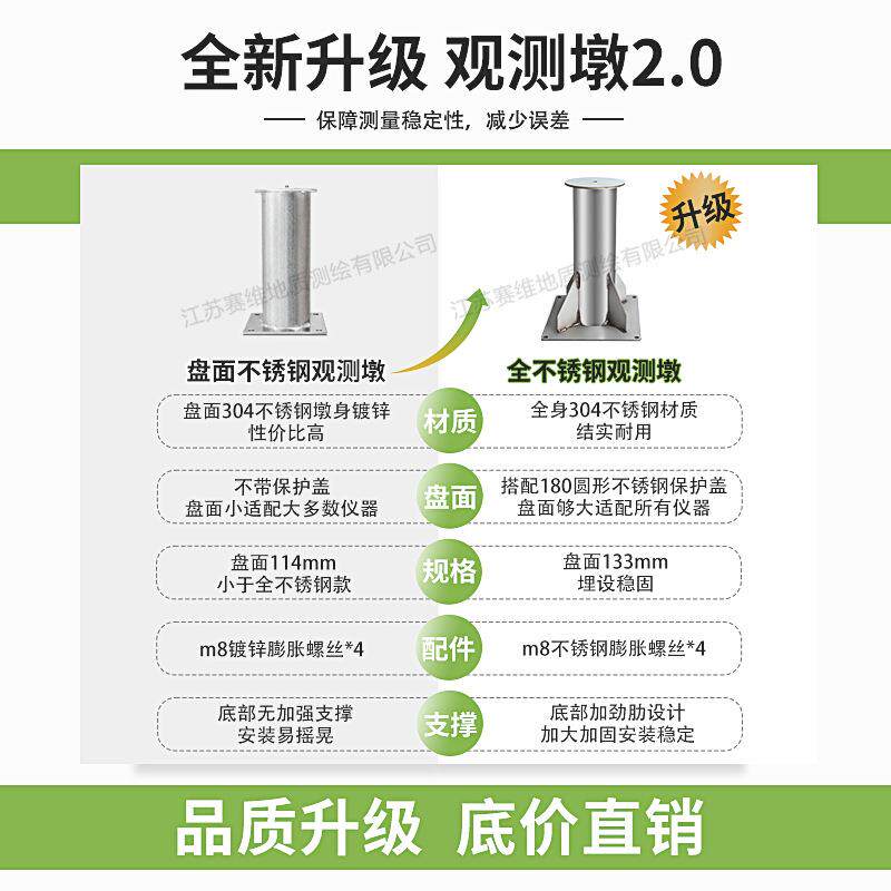 📚 大水牛全站仪观测墩304不锈钢强制对中盘基座沉降观测对中器站桩
